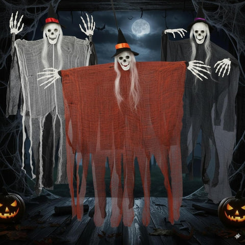 Halloween Decorations Outdoor Ghost, 3 Pack Hanging Skeleton Halloween Decor, 100CM X 75CM Scary Ghosts Grim Reaper for Haunted House Indoor Party Tree Garden Decorations