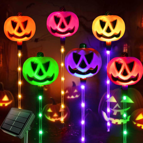 6 Solar Pumpkin Stake Lights for Halloween Decorations Outdoor, Colour Changing Lights, Light up Decorations, Pathway Party Porch Yard Decor (HUK119)