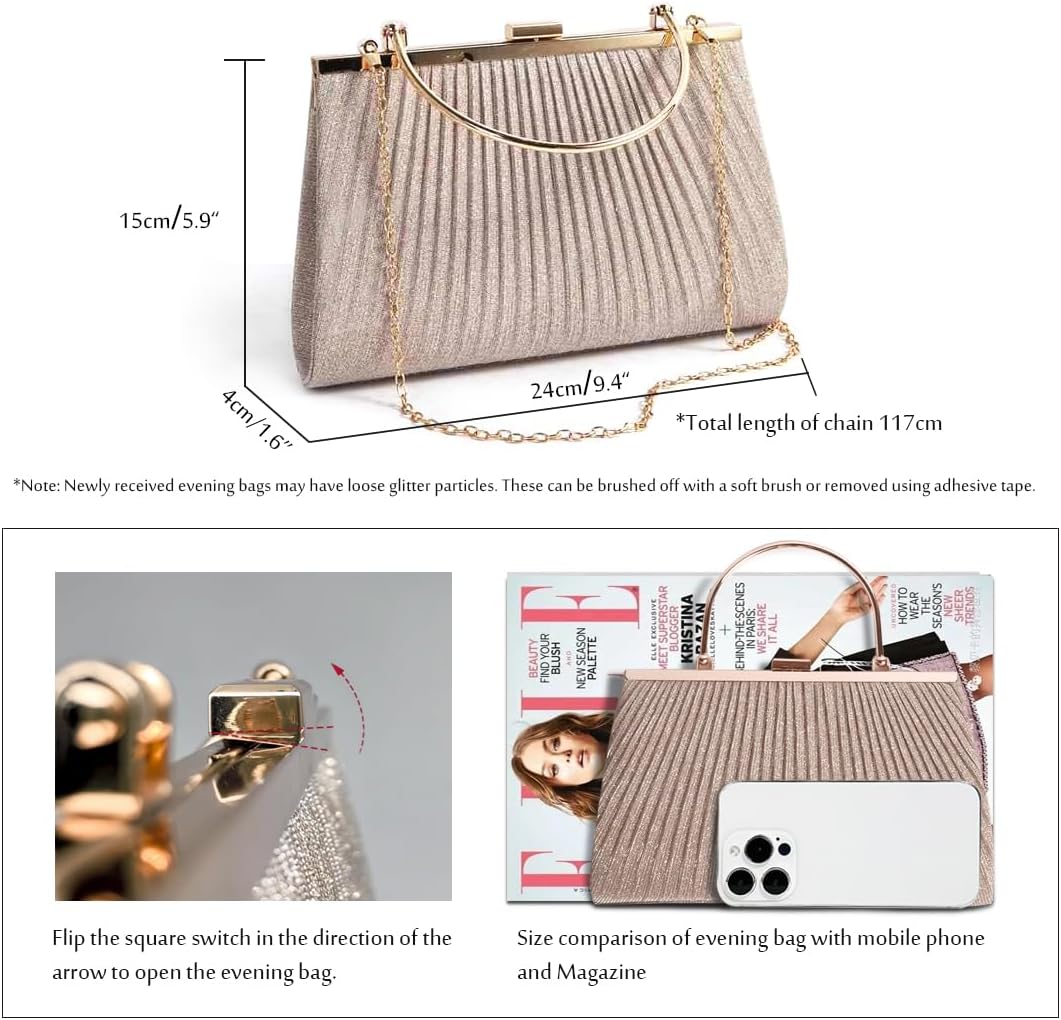 ✻【Material】: This evening bag is made of high quality glitter material and delicate hardware, shiny and elegant