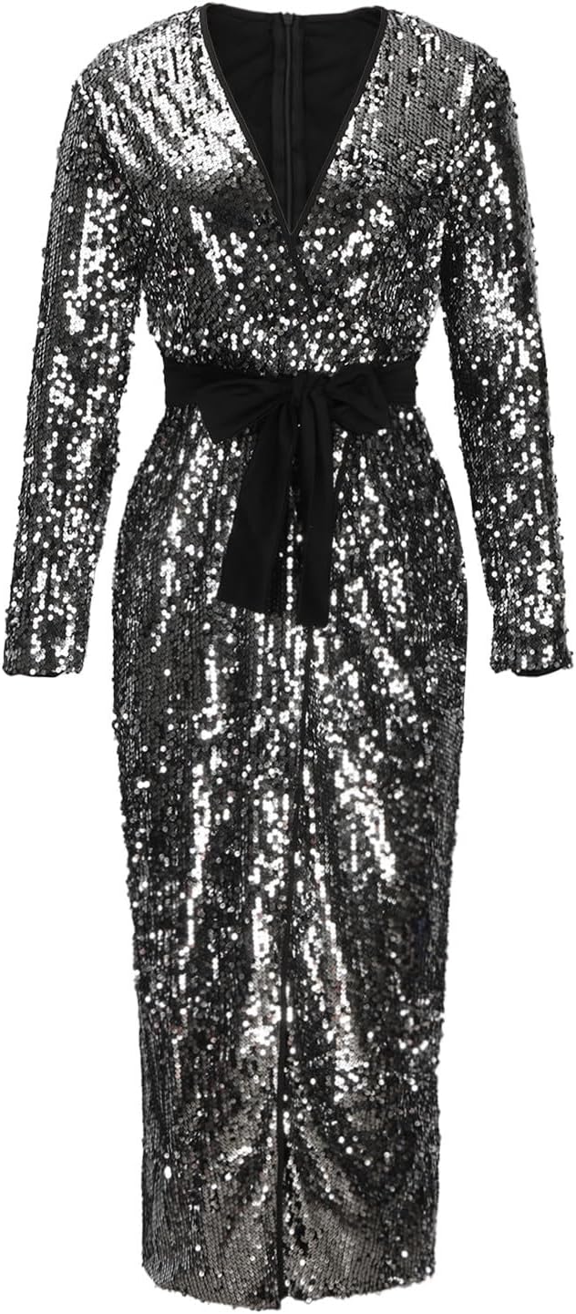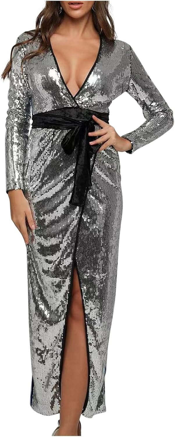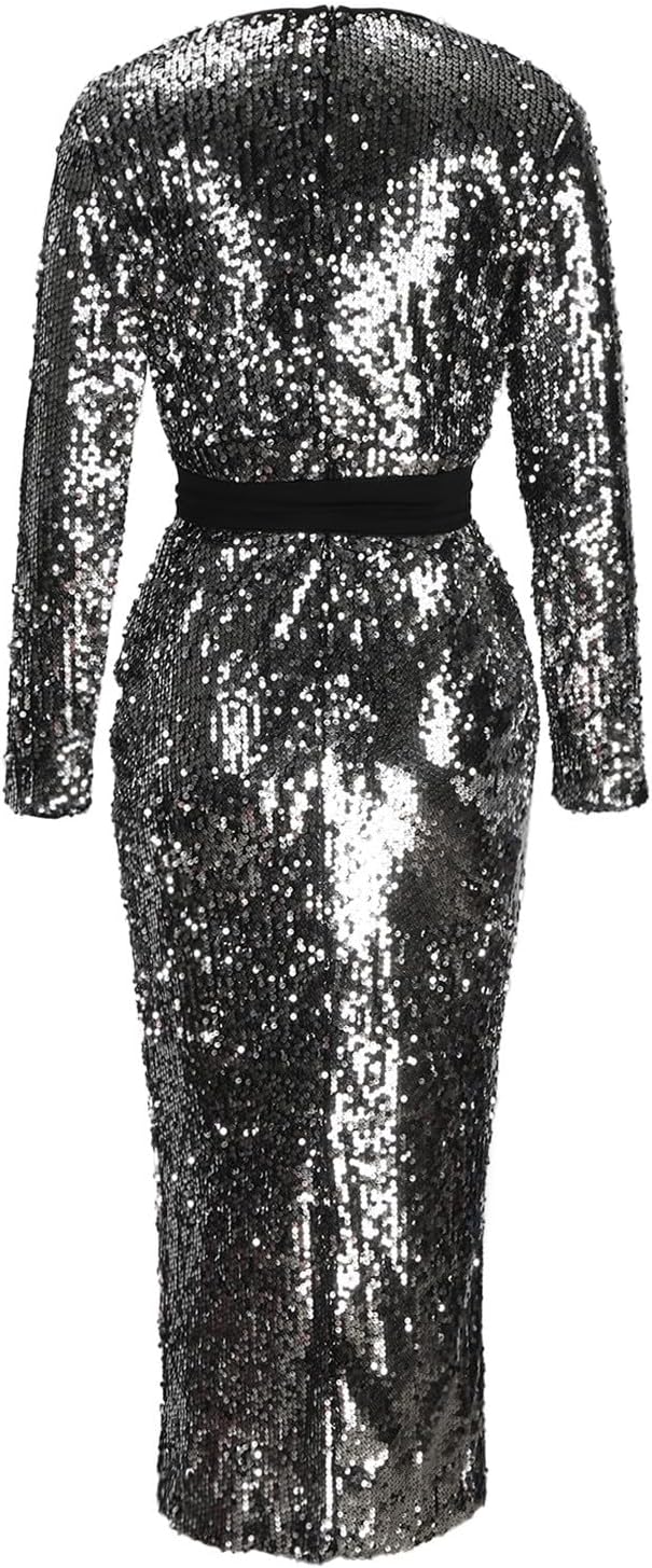 【Fashion Design】This prom dress has sequins for elegance and sophistication. This sequin bodycon dress features a stylish wrap design that accentuates your curves and adds a touch of elegance to your look, it makes you more charming and unique.
