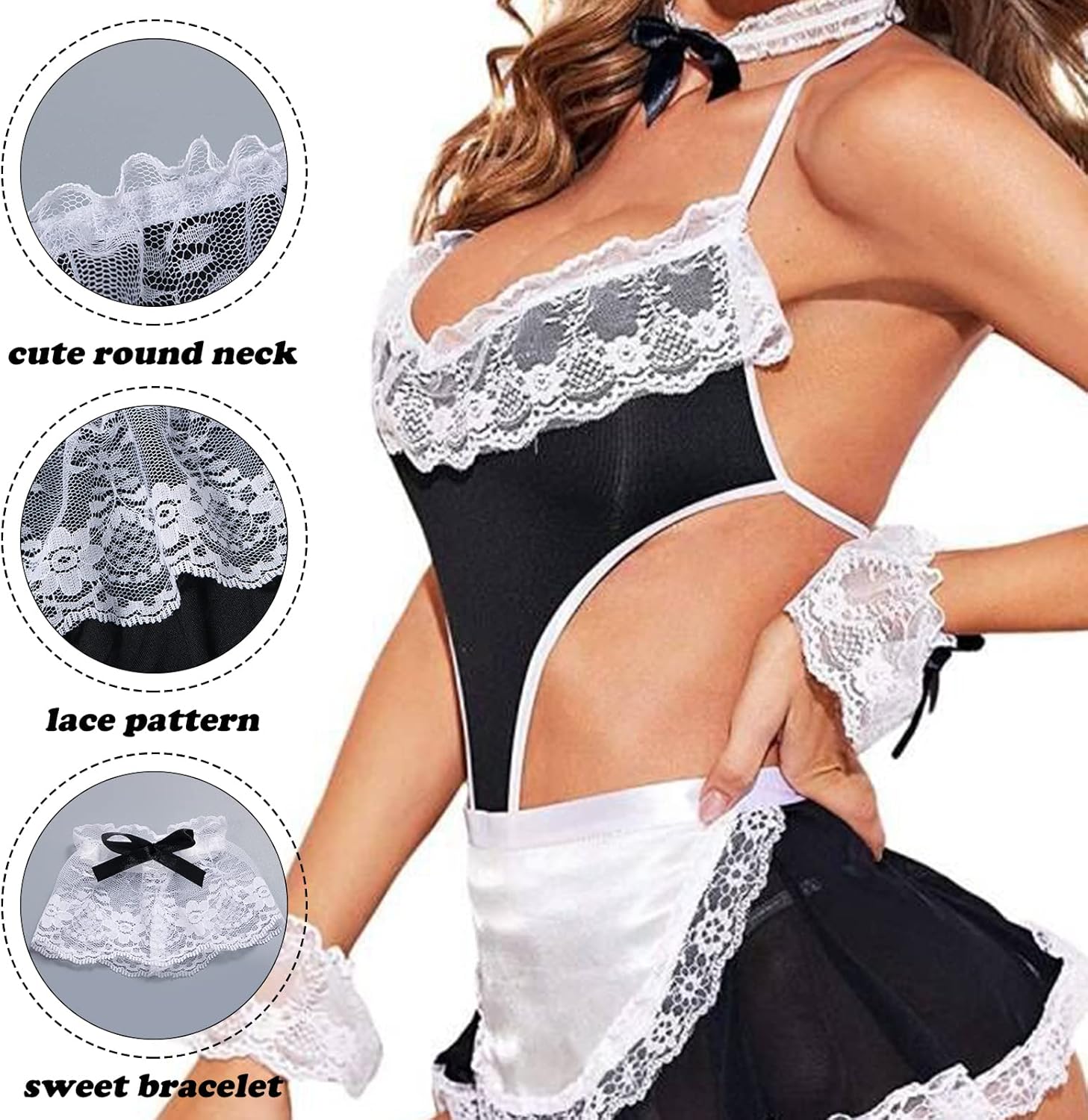 π HIGH QUALITY MATERIAL: This women's sexy maid costume is made of 85% polyester+15% Spandex, the lace is soft and breathable, and feels comfortable to touch.