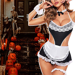 π SEXY AND CUTE STYLE: Super cute maid one-piece dress with cute ruffles on the chest, beautiful apron and miniskirt hem details, double the sexy charm.