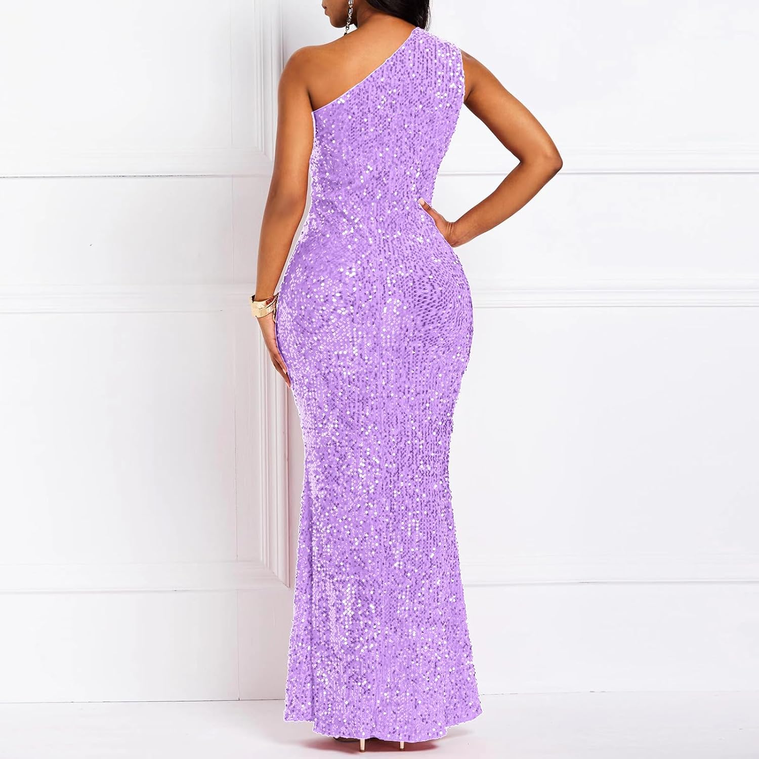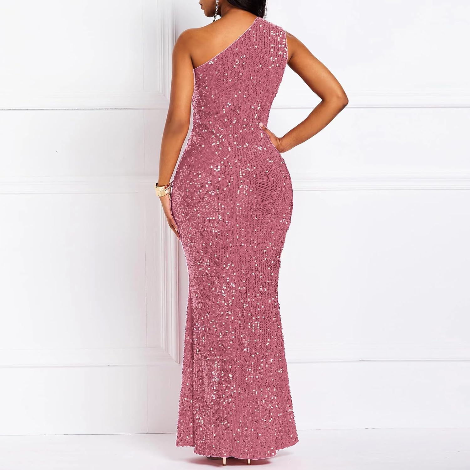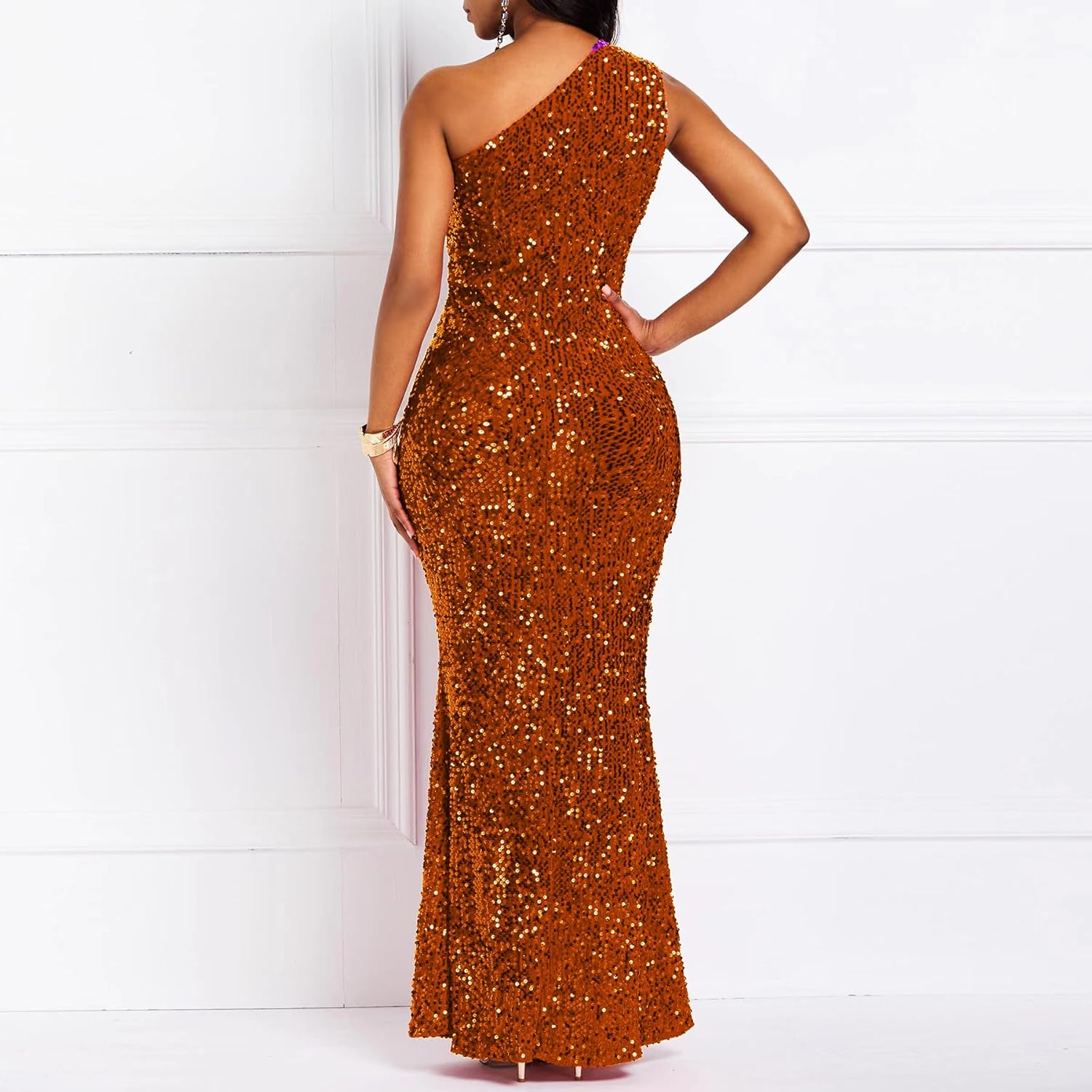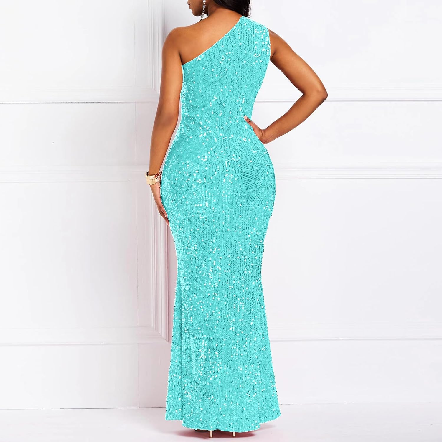 Sequins Fashion Sleeveless Oblique Collar Mermaid Women's Maxi Dress Bodycon Dress Party Dress