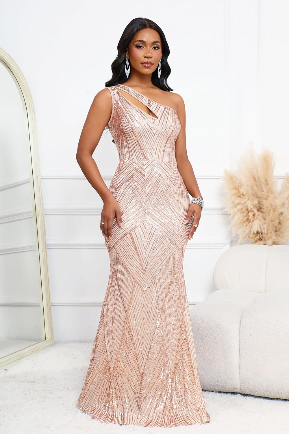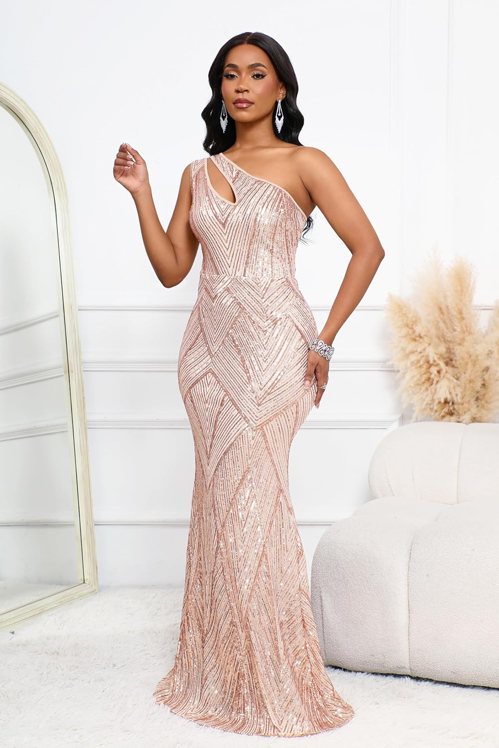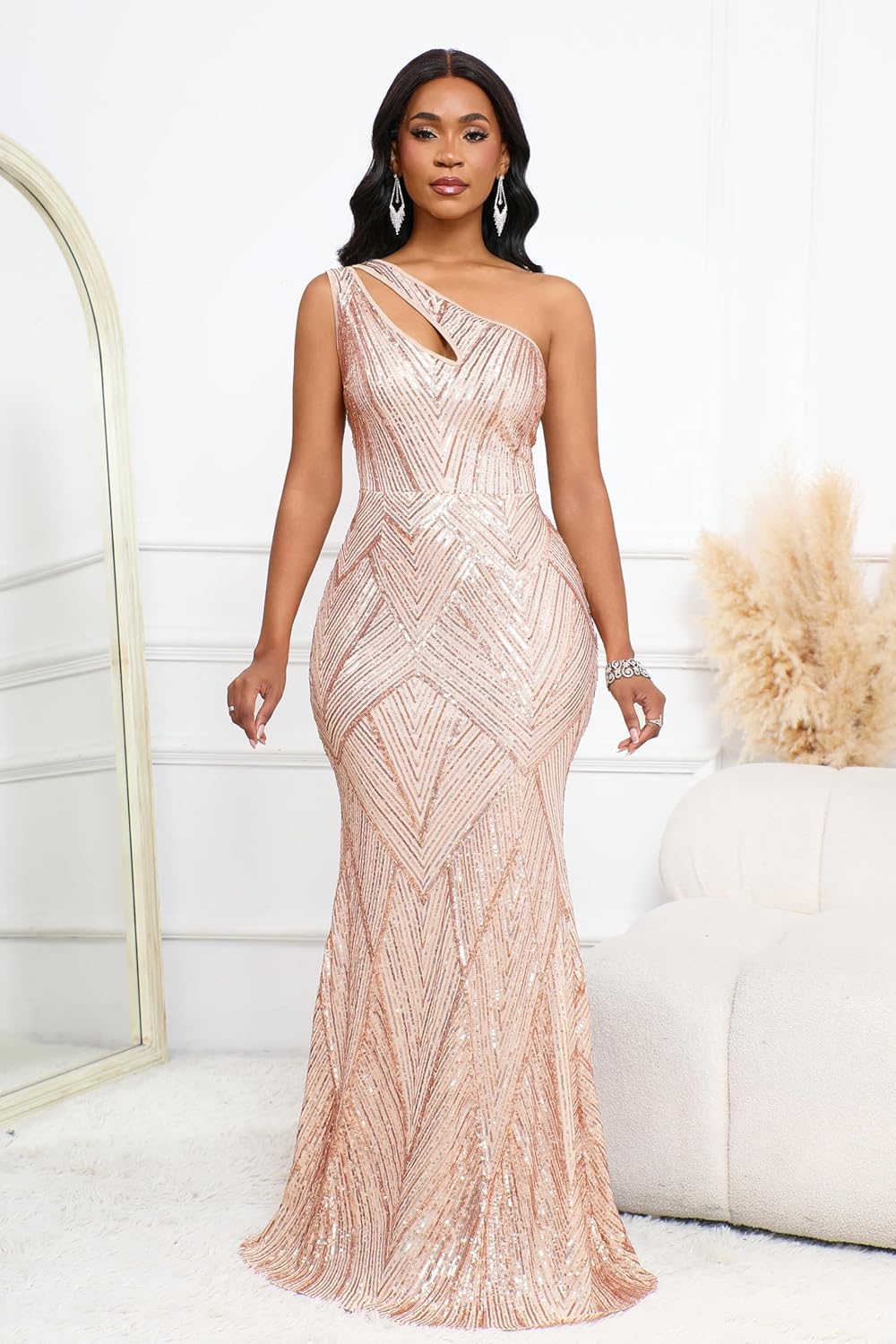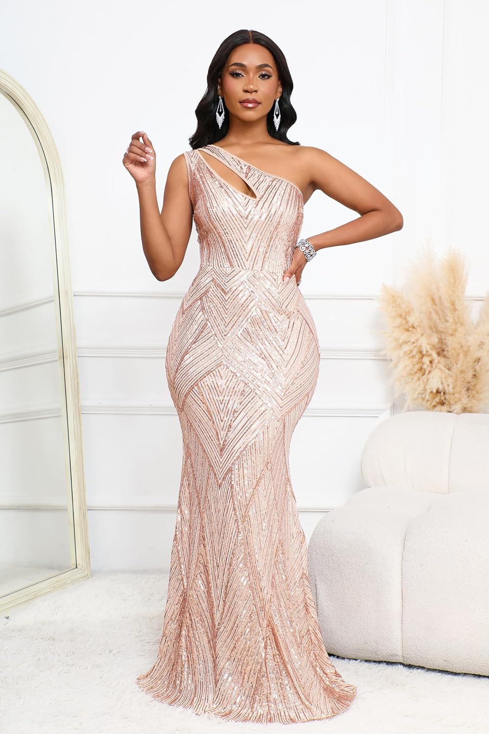Sequins Fashion Sleeveless Oblique Collar Mermaid Women's Maxi Dress Bodycon Dress Party Dress