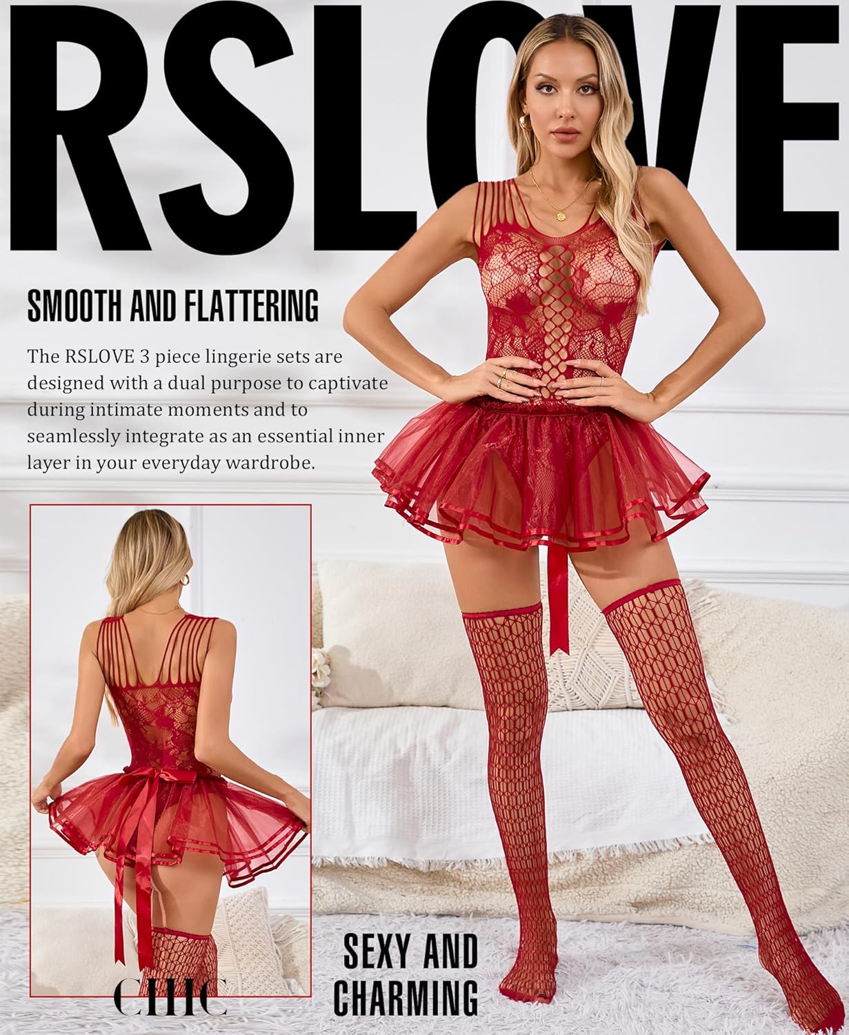 Unleash your sexy creativity with RSLOVE's creative 3 piece lingerie set. It's the perfect ensemble to fulfill all your sexy outfit fantasies.