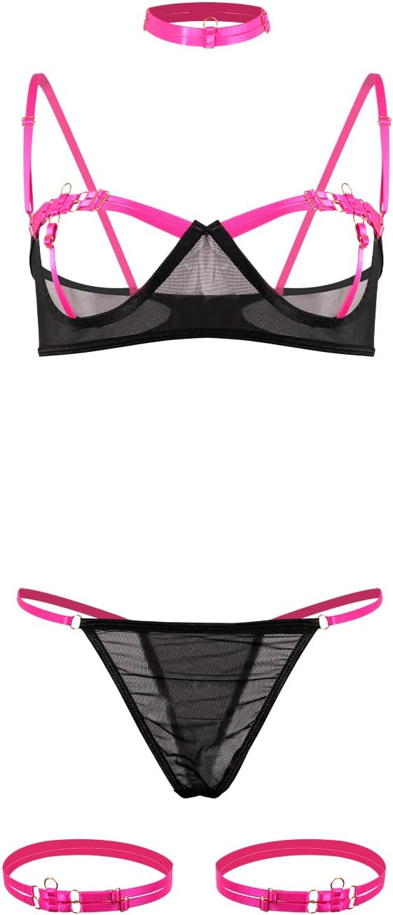 Sexy Lingerie Women Strappy Harness Cage Bra and Panties Set Elastic Straps Top Mesh See Through Knicker Choker INS Nightwear for Halloween Rave Outfits Party Christmas Costume - S / Pink is backordered. It will be shipped when back in stock.