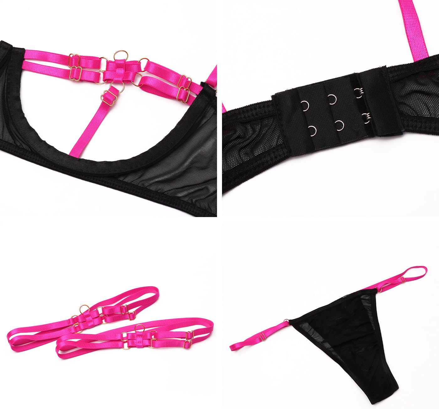 💋💋【Fashion Design】 Fashion strappy harness lingerie set, colorful straps harness cage mesh bra and sheer mesh strap knicker thongs. The straps are also a stylish accessories to other fashion tops.