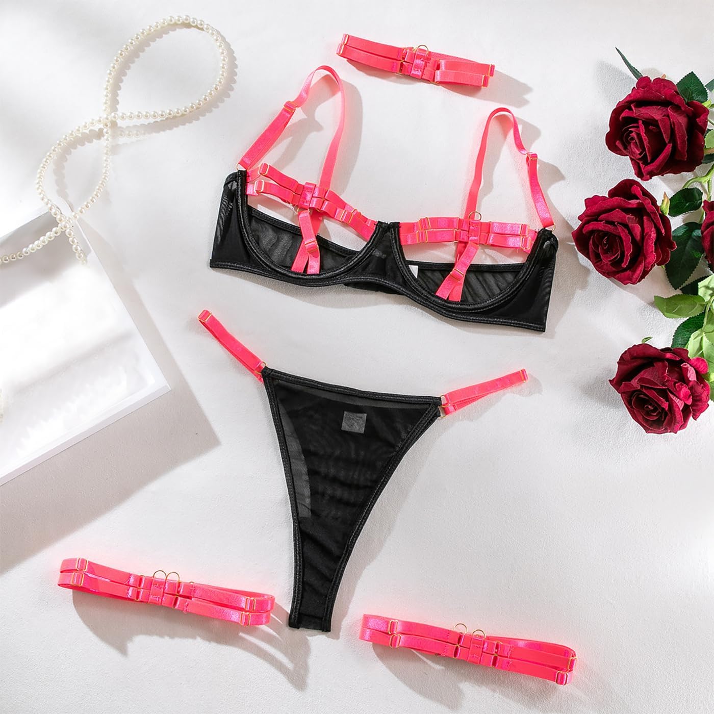 🎈🎈【Wash Tips】 2 piece mesh lingerie strappy outfits is recommended to hand wash or machine wash in a laundry bag and dry away from direct heat. Please do not use bleach or iron.