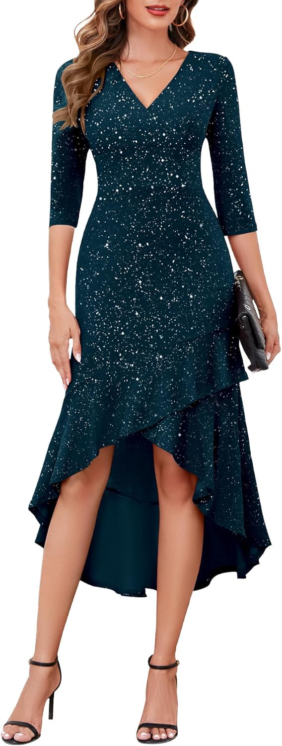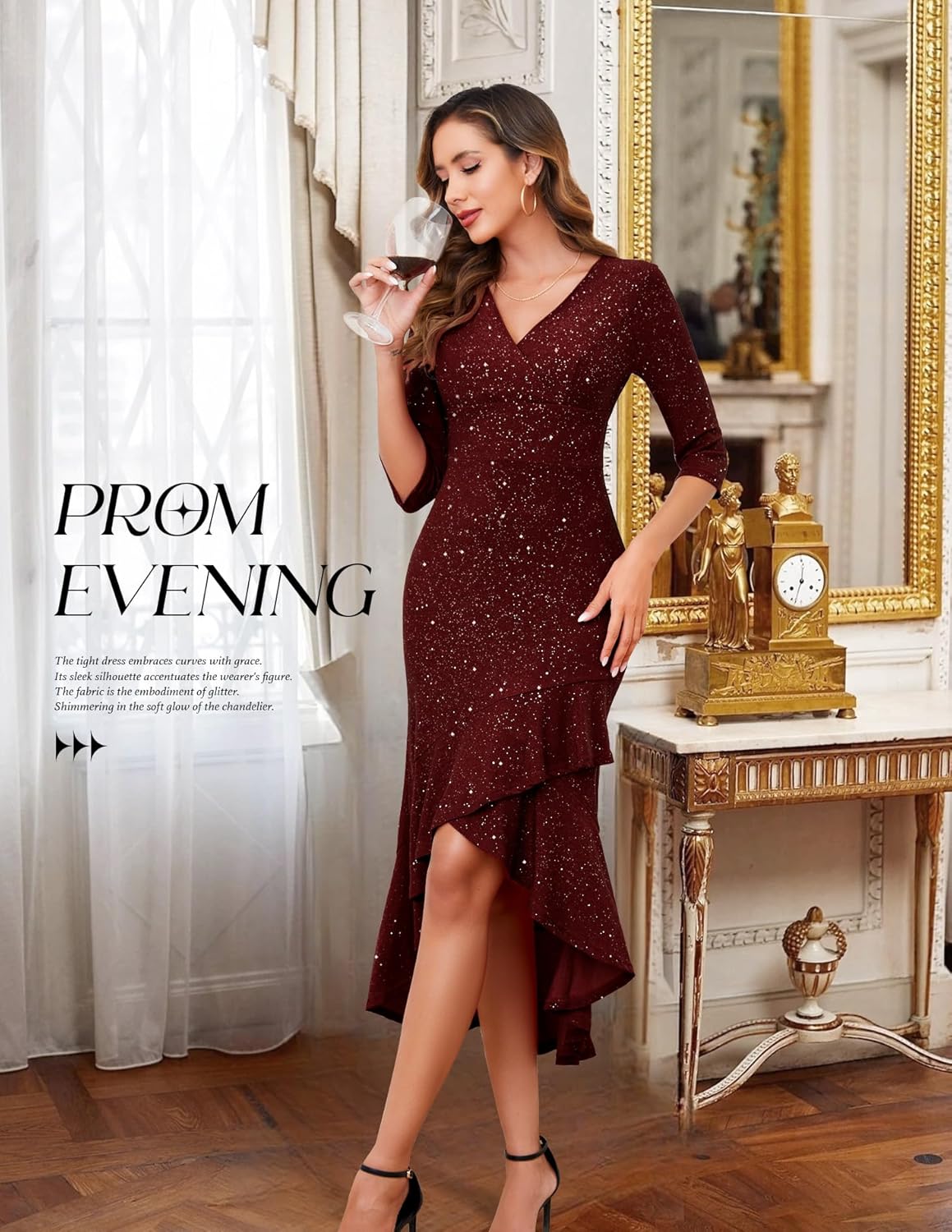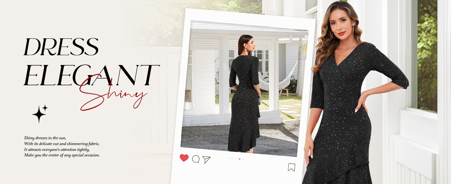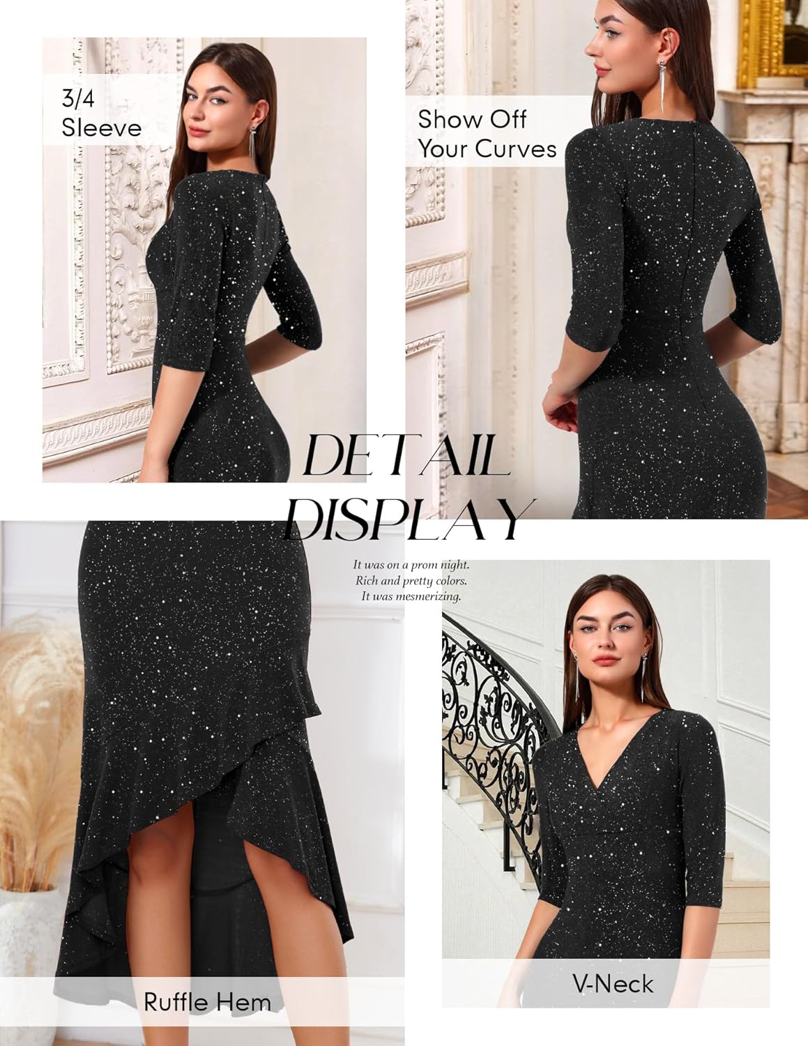 Glitter dress: the long sleeve evening dress is covered with starry sequins, and it only needs a little light to make you stand out from the crowd. Perfect for evening party, ball, Christmas or New Year's Eve parties!