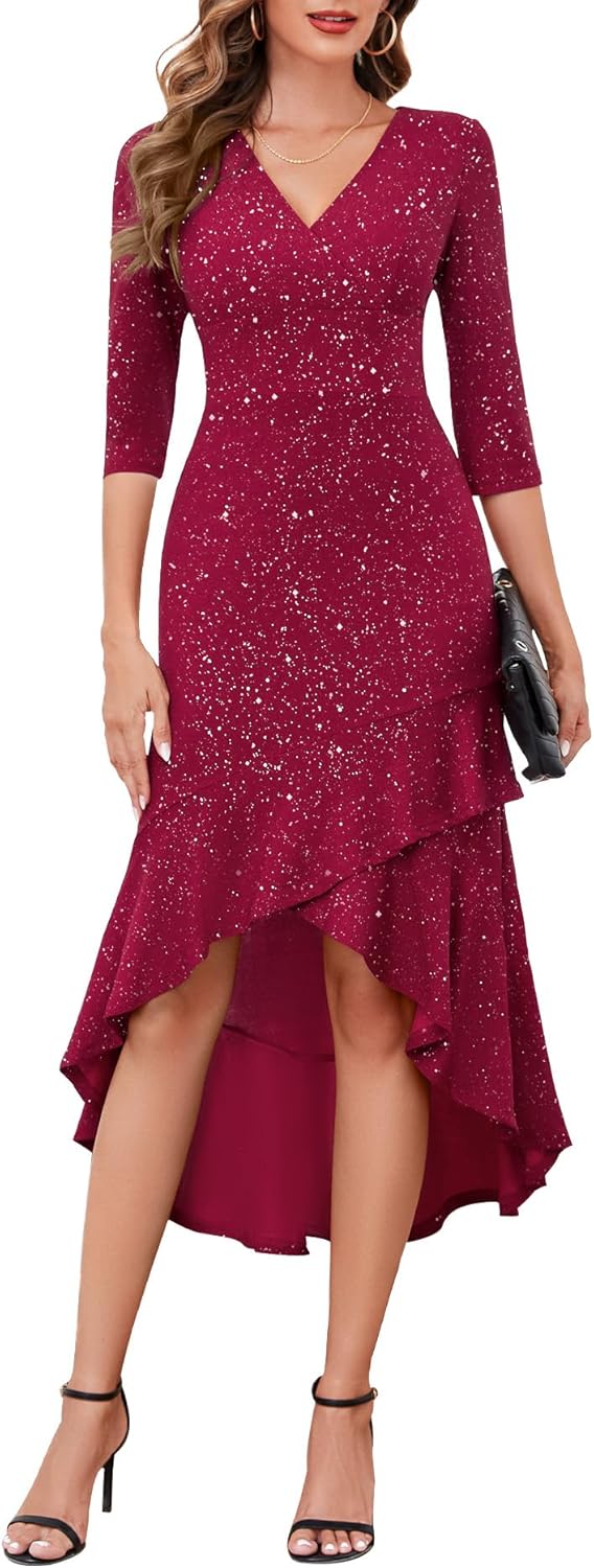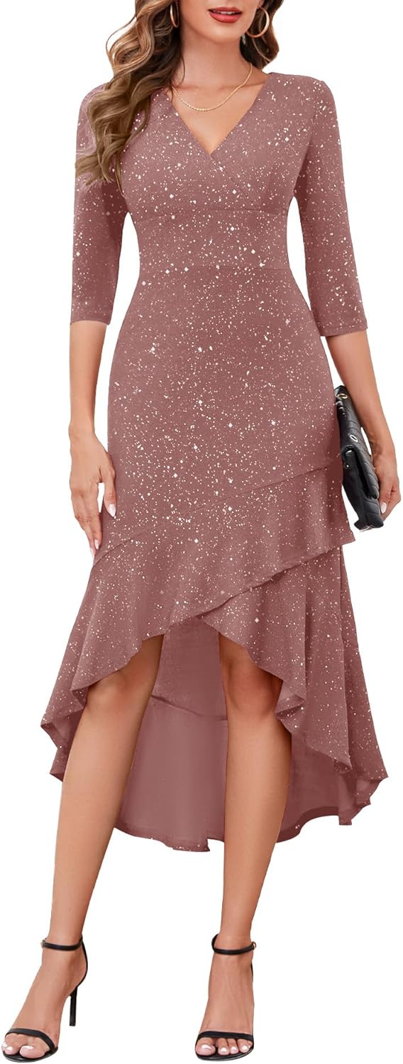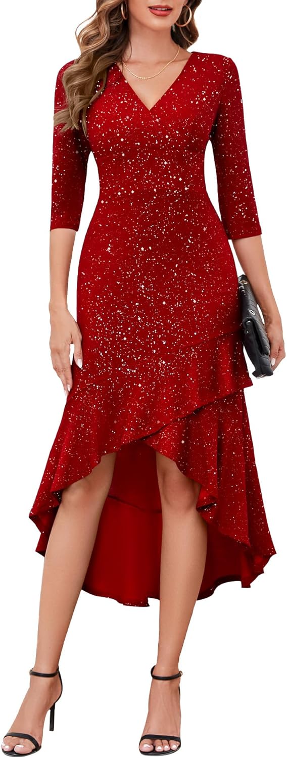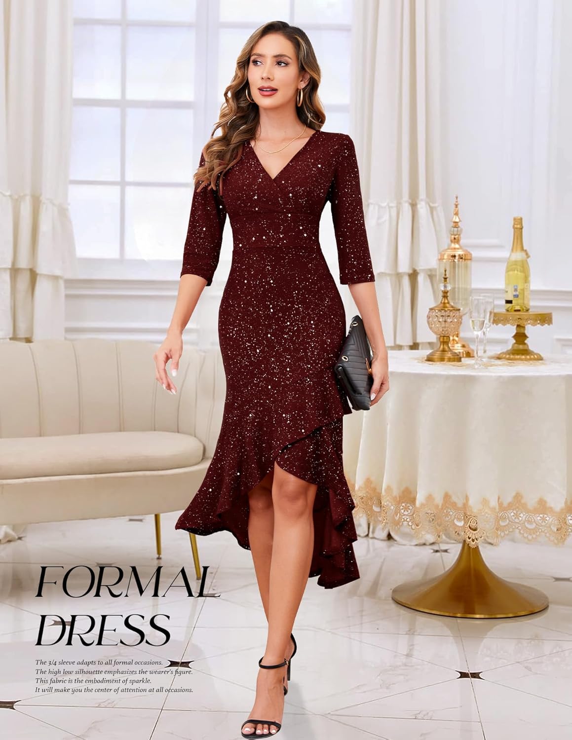 Evening Sequin Dress Formal Wedding Guest Glitter Sparkly Bodycon Dresses Elegant Birthday Ruffle High Low Dress