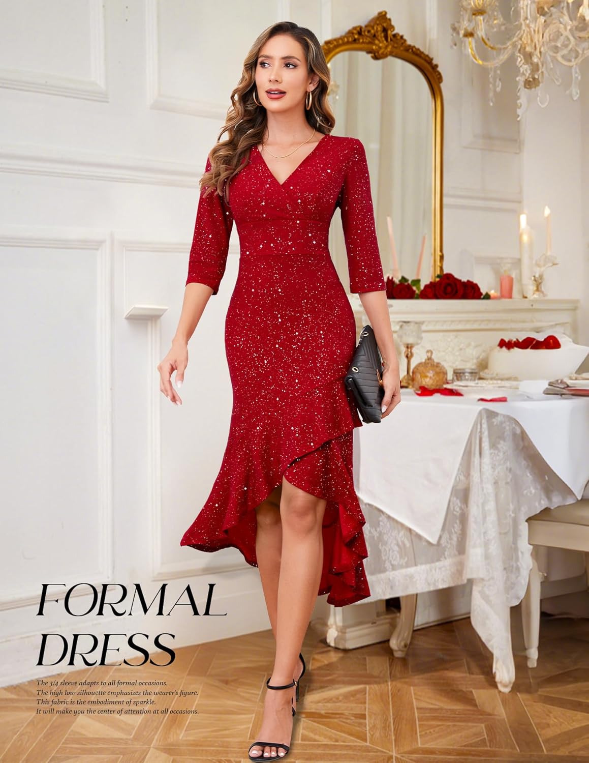 3/4 Sleeve Elegant Formal Dress for Cocktail Classy Fall/Winter Christmas Church Work Dress