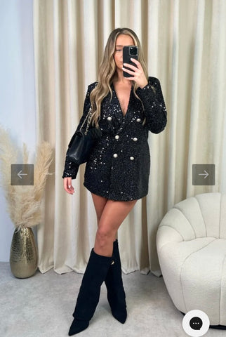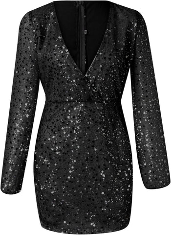 Step out in style and sparkle in this glamorous Mila black mini dress! Featuring a full...