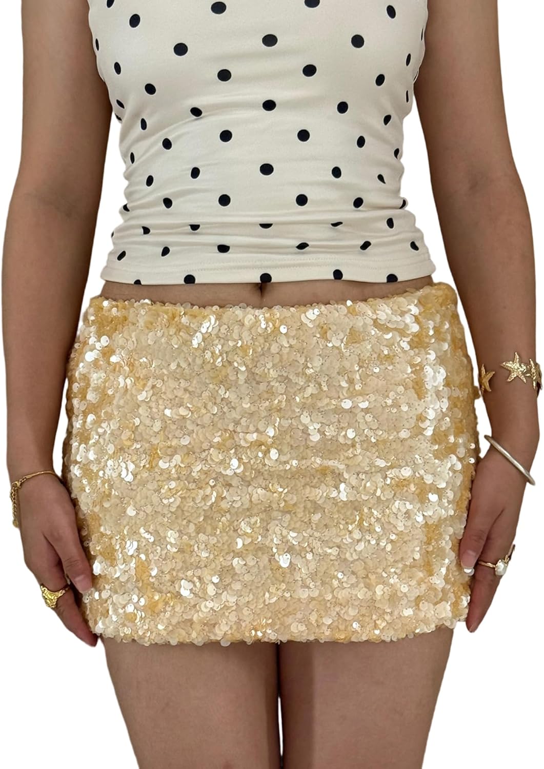 Sequin Skirt Women Sparkly Mini Skirt Stretchy Bodycon Shiny Glitter Short Skirts for Party Club Night Out