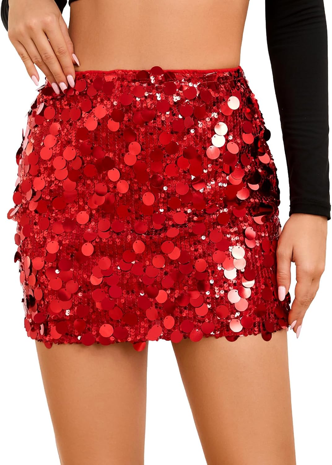 Sequin Skirt for Women Stretchy Bodycon Mini Sparkly Glitter Shiny Skirts Night Out Party