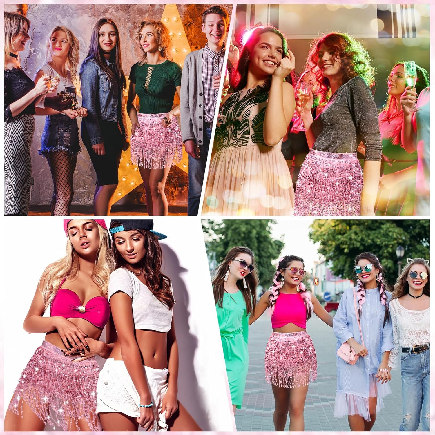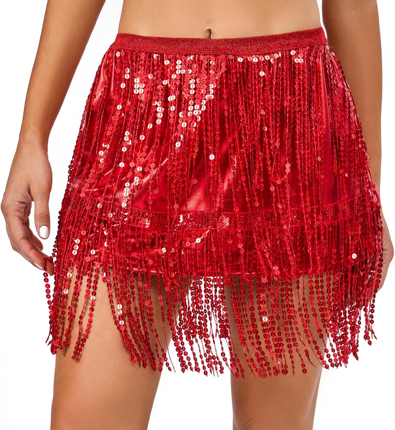 Sequin Tassel Skirt Sparkly Tinsel Fringe Skirt Belly Dance Wrap Hip Scarf Skirts Rave Halloween Costume for Women