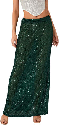 Sequin Skirt Women's Long Glitter Skirt Low Waist Party Skirt Elegant Pencil Skirt A-line Tulle Skirt