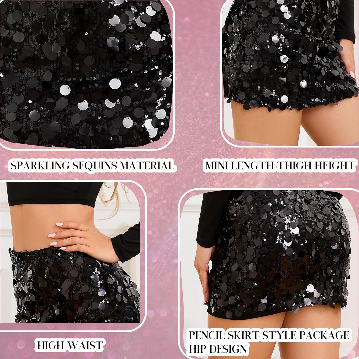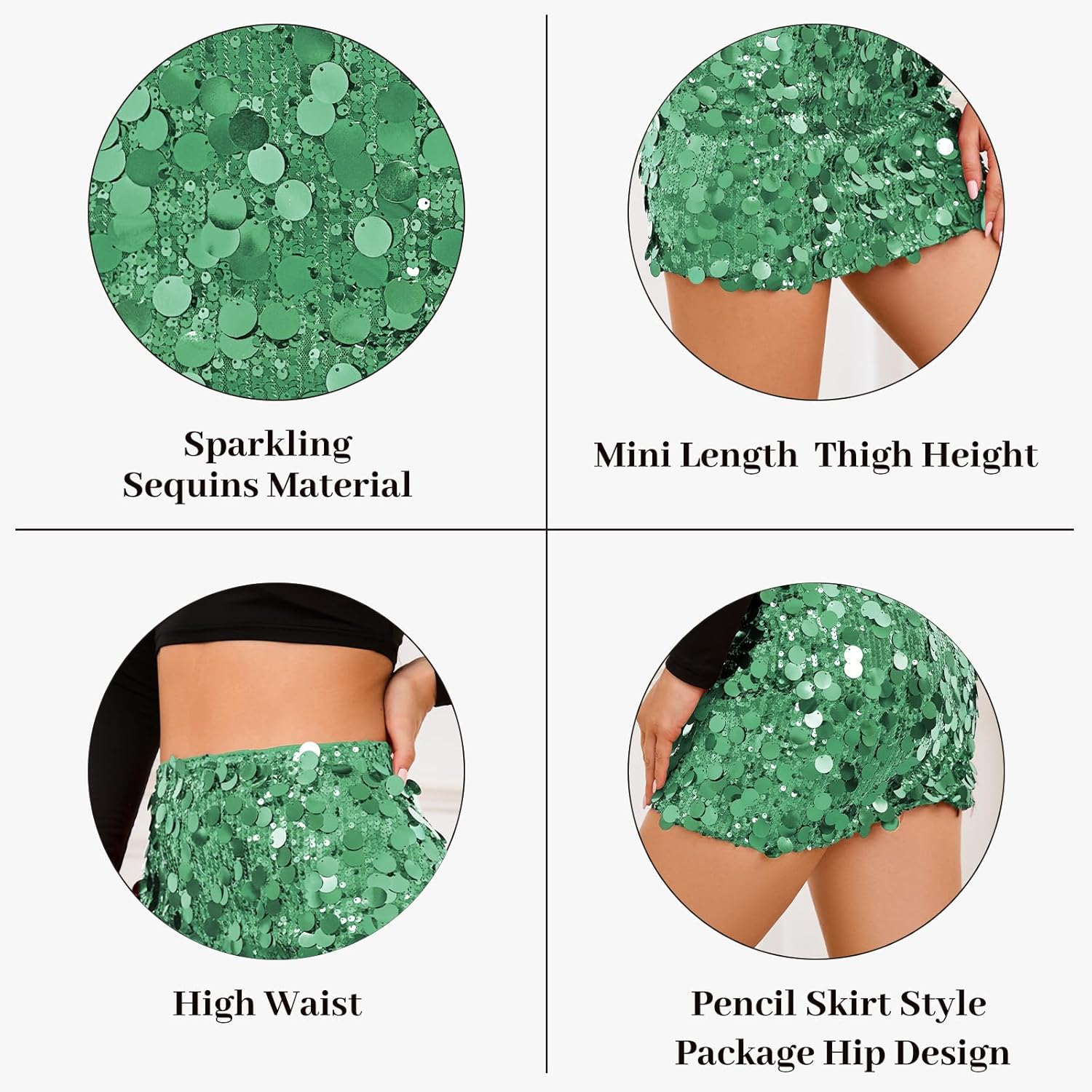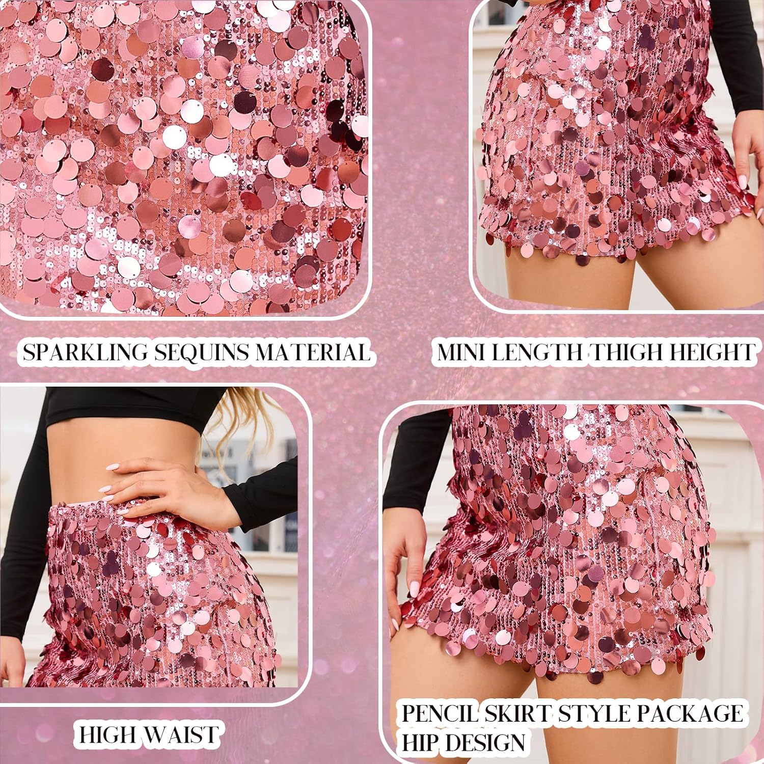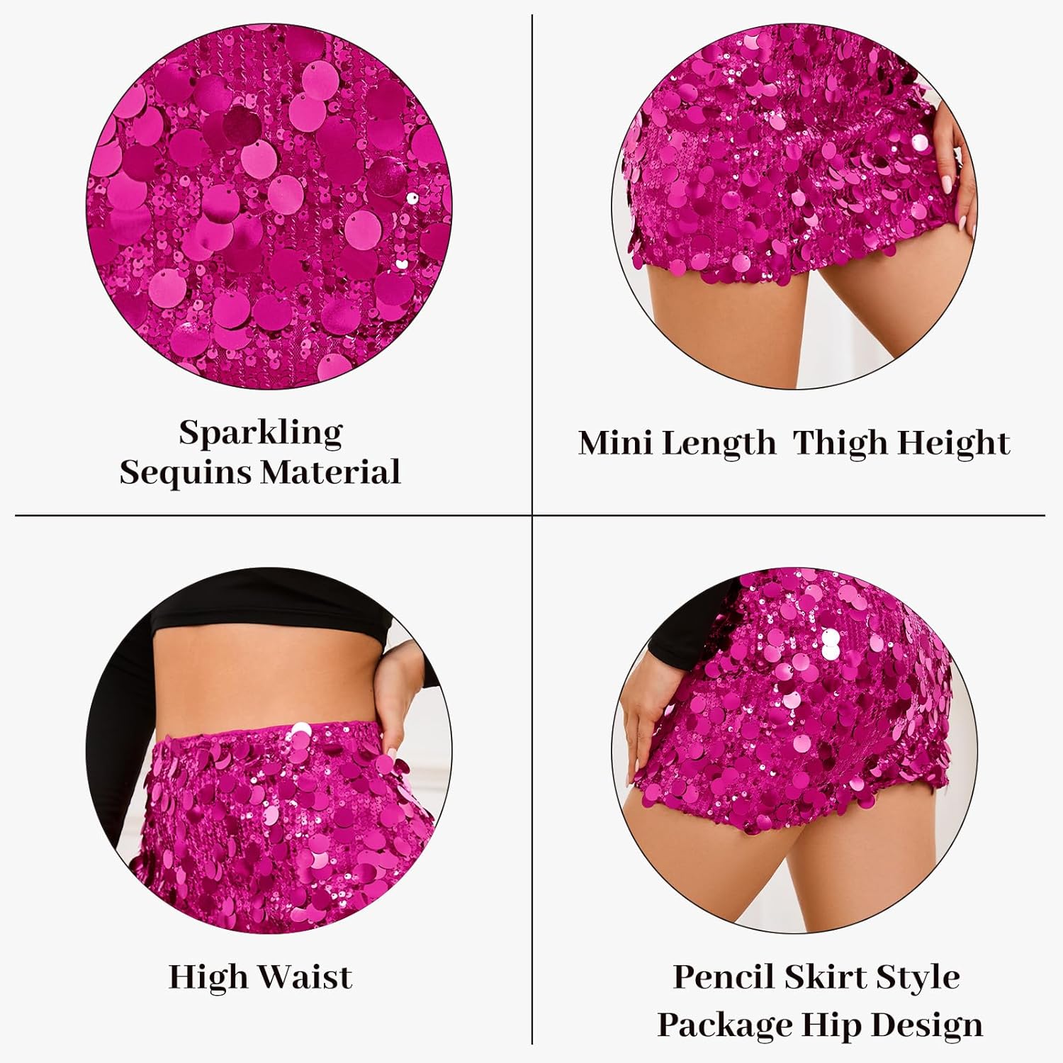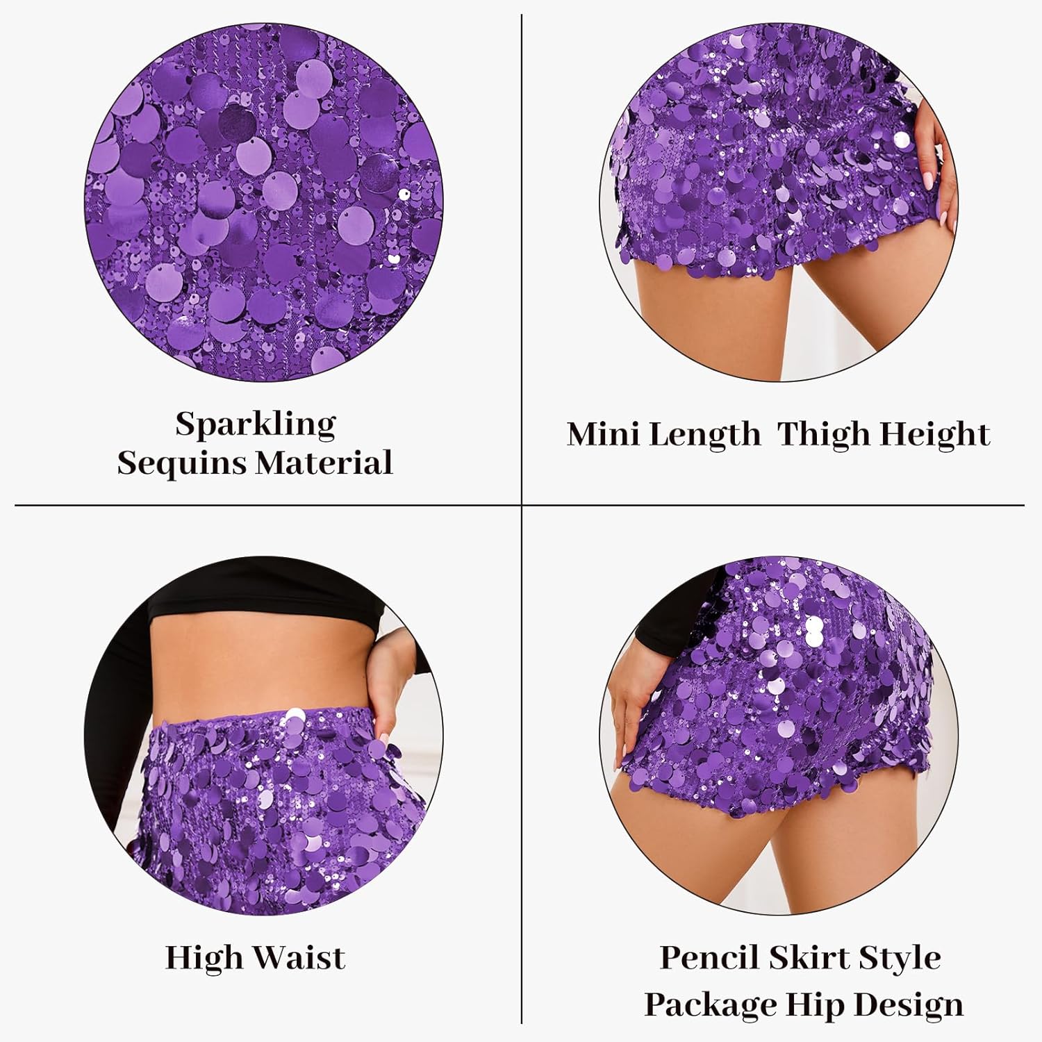Mini Sequin Skirt Features: Sequin skirt, high waist, slim fit, mini length. Highlights your curves for a captivating, sparkly look. It's stretchy, easy to wear, and fully adorned with sparkling sequins.