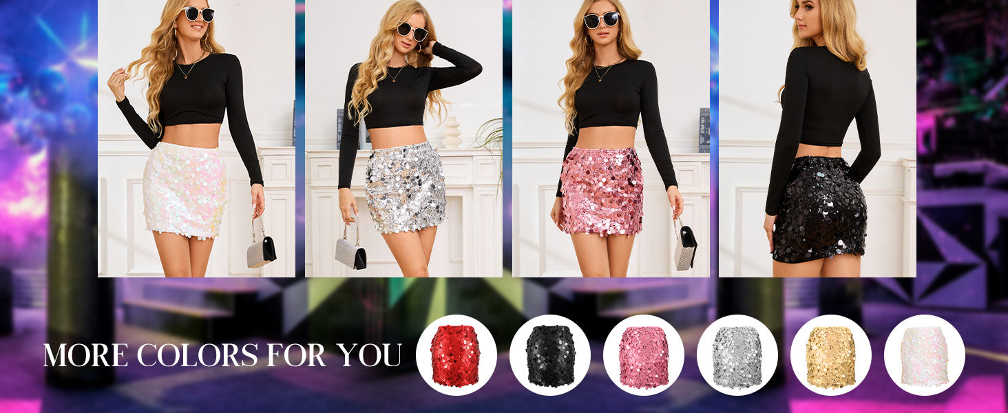 Occasion: Women's Sequin Skirt great for night out party, club, concerts, music festivals, disco, formal party, wedding, date nights, Anniversary, Halloween costume, Christmas, New Year's Eve, Valentine or other occasions.