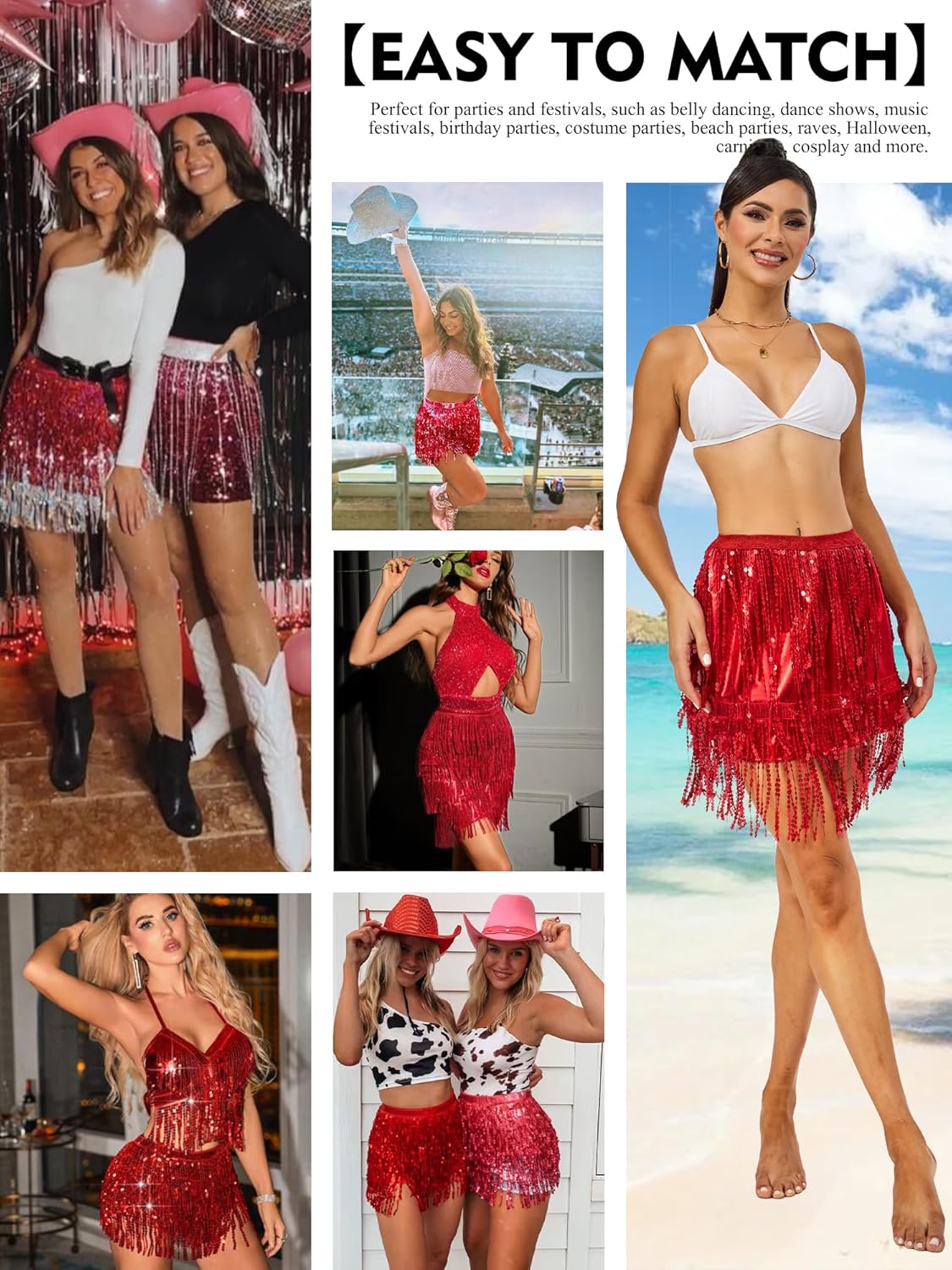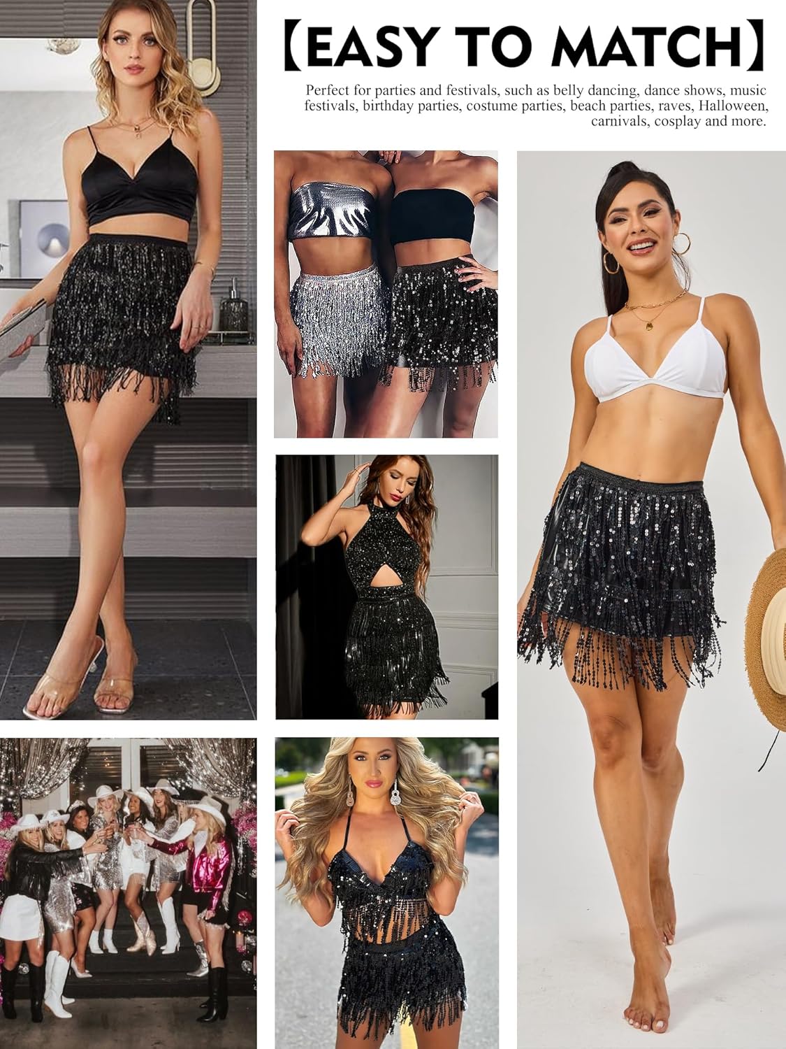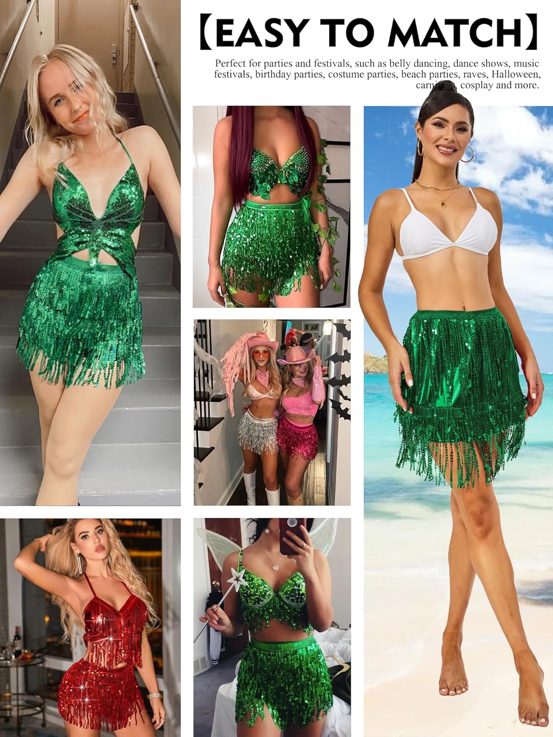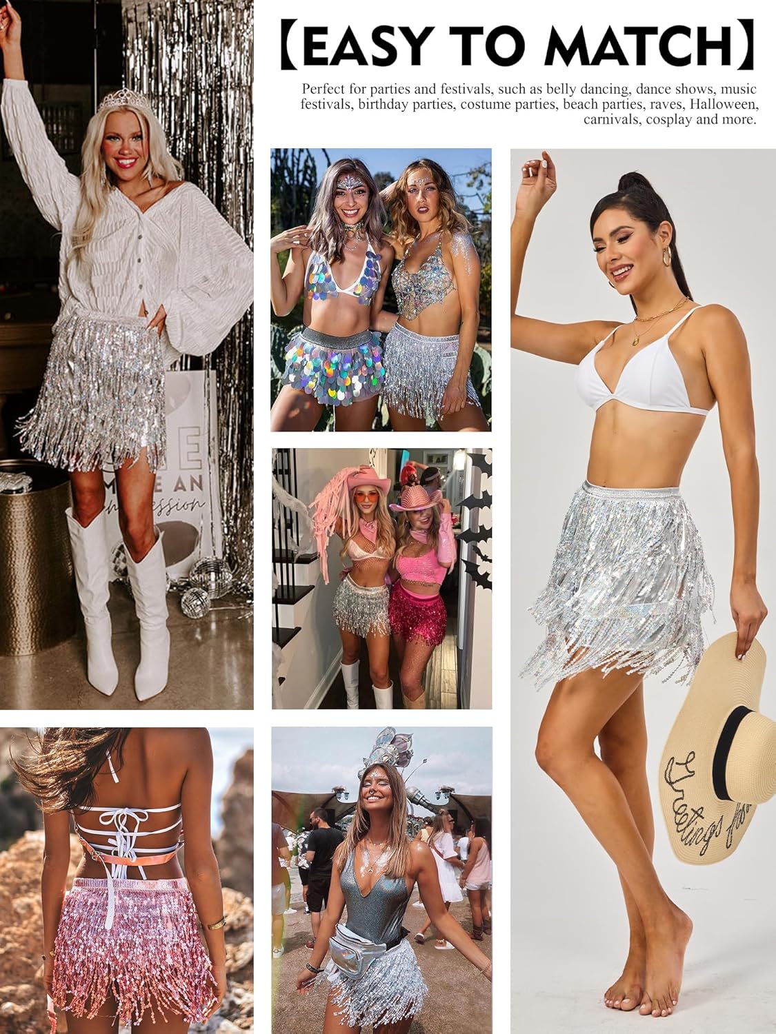 EASY TO MATCH: The glitter sequin skirt is perfect for parties and festivals, such as belly dancing, dance shows, music festivals, birthday parties, masquerade parties, club costumes, holiday shows, beach parties, raves, Halloween, pool parties, carnivals, cosplay and more. Perfect for pairing with your summer beachwear and any other tops.