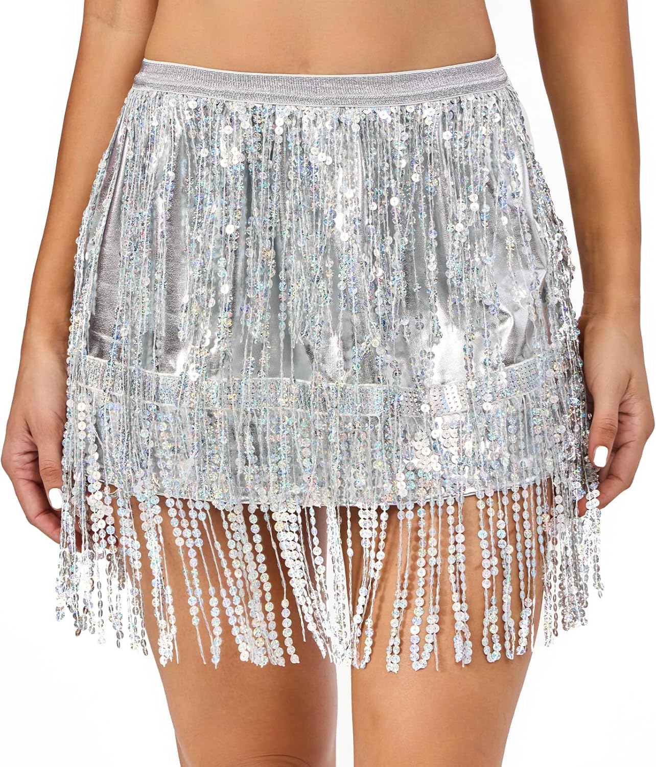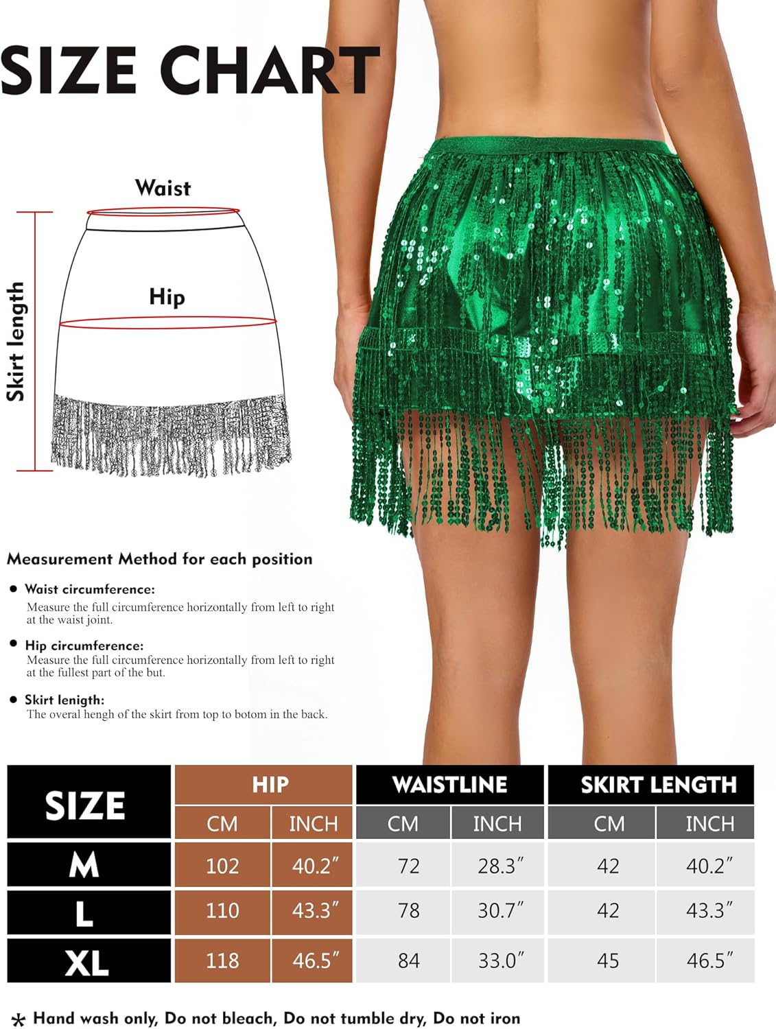 Gorgeous Design: Bold and unique belly dance skirt will make you shine in any occasion, when you walk or dance, the fringe will sway with your dance, and the fluorescent light reflected from the sequins will make you the centre of attention, Let you shine in the crowd.