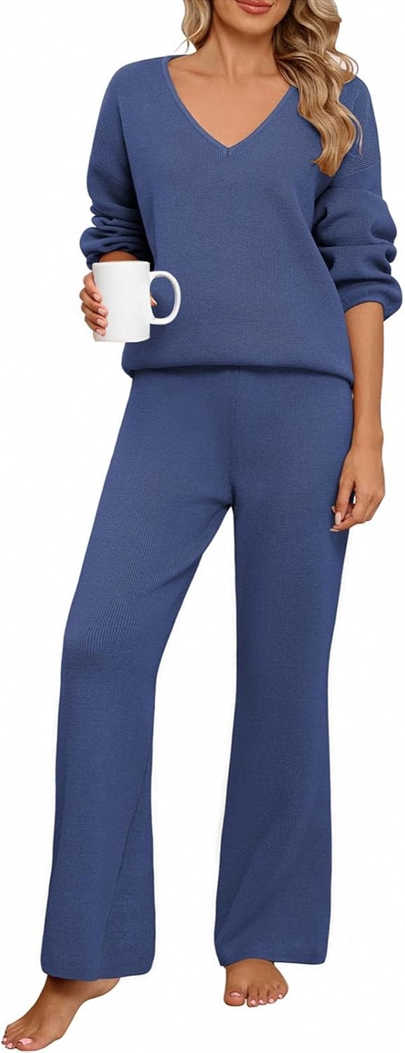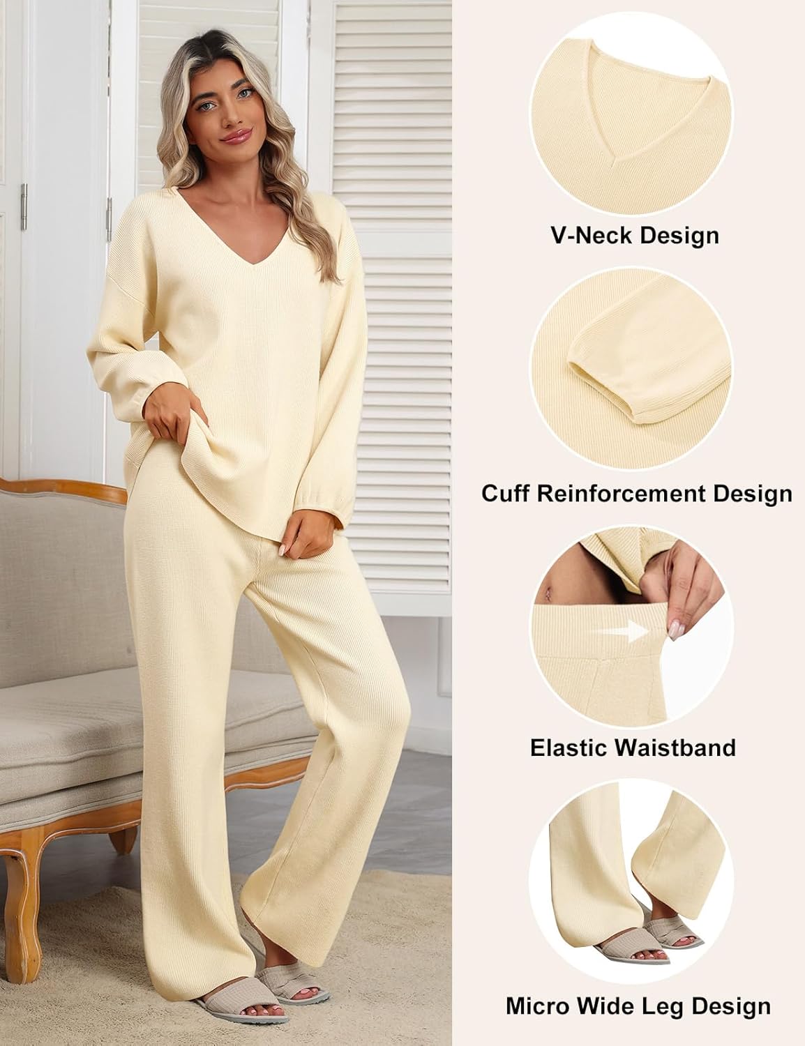【Chic Design】: Long sleeve, loose fit and elasticated fabric design are suitable for more seasons and different body shapes to wear. Ribbed pattern, wrap-around V-neck and slightly tightened cuffs design give these 2 pieces women's tracksuits full set a textured and chic look. Perfect as leisure loungewear or tracksuit set.