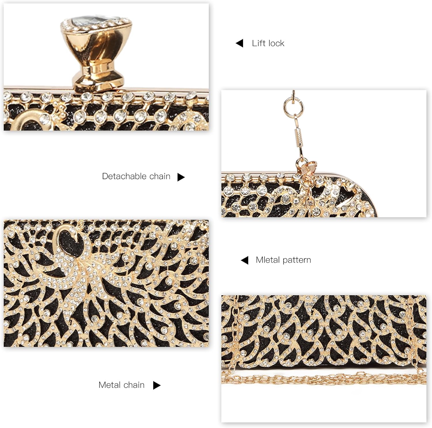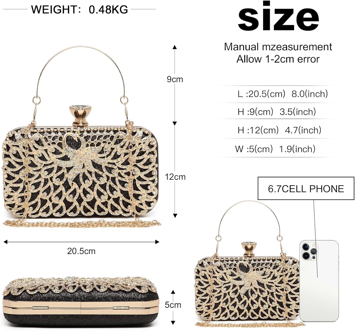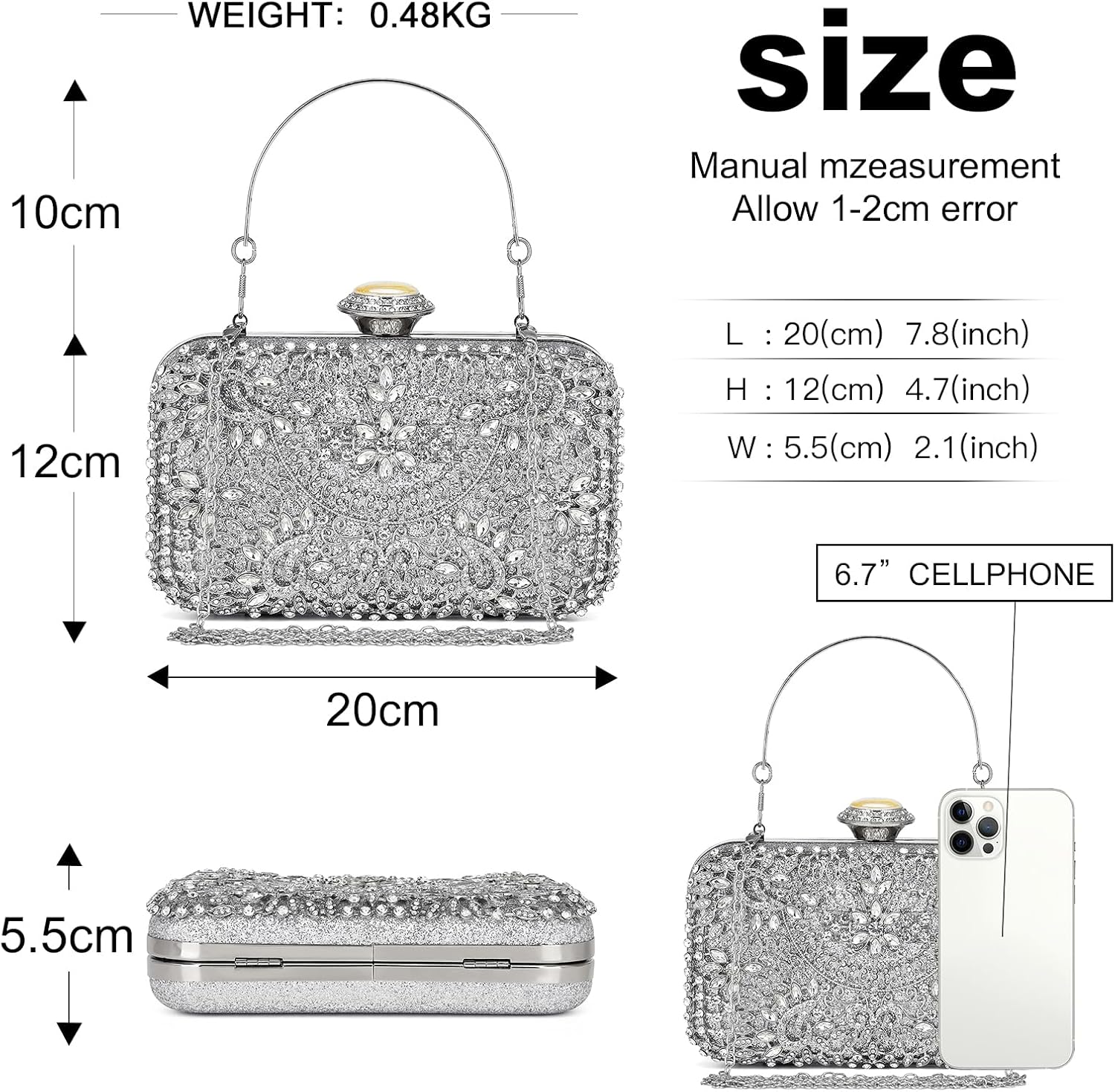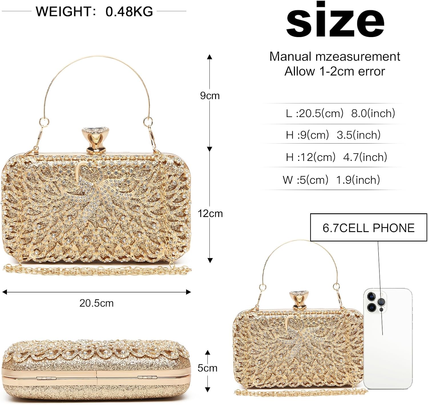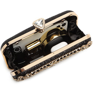 Clutch Bag Material: This clutch bag surface is a hand glued diamonds craft with a metal shell and polyester fiber lining. Enhance your noble profile, highlight your elegance.