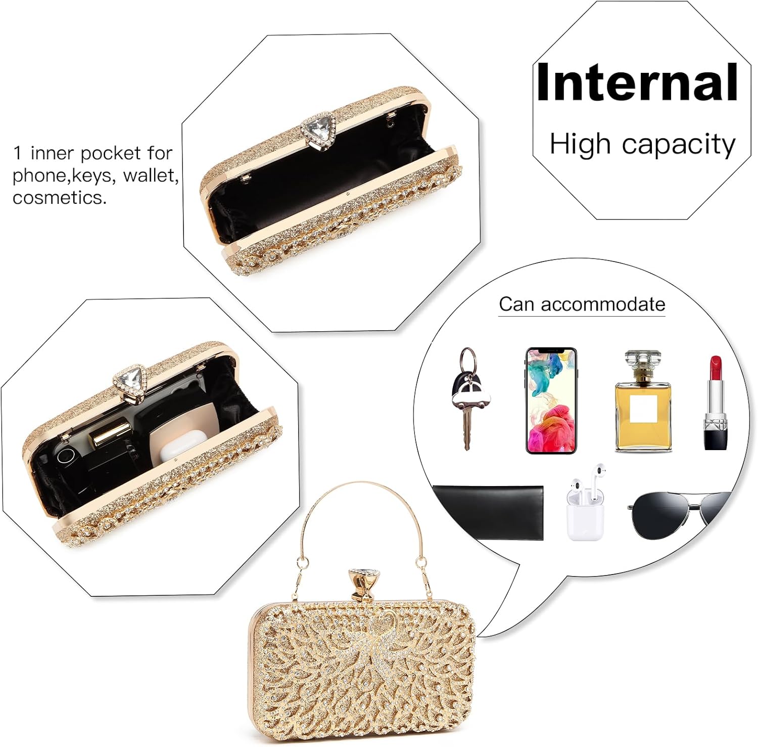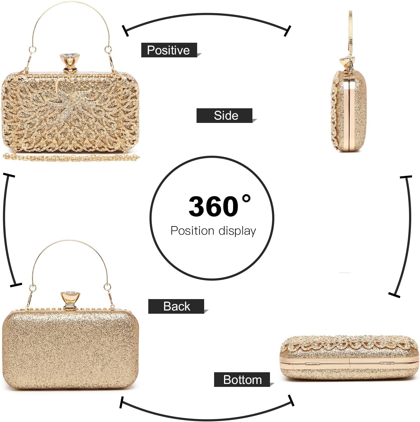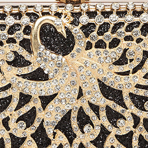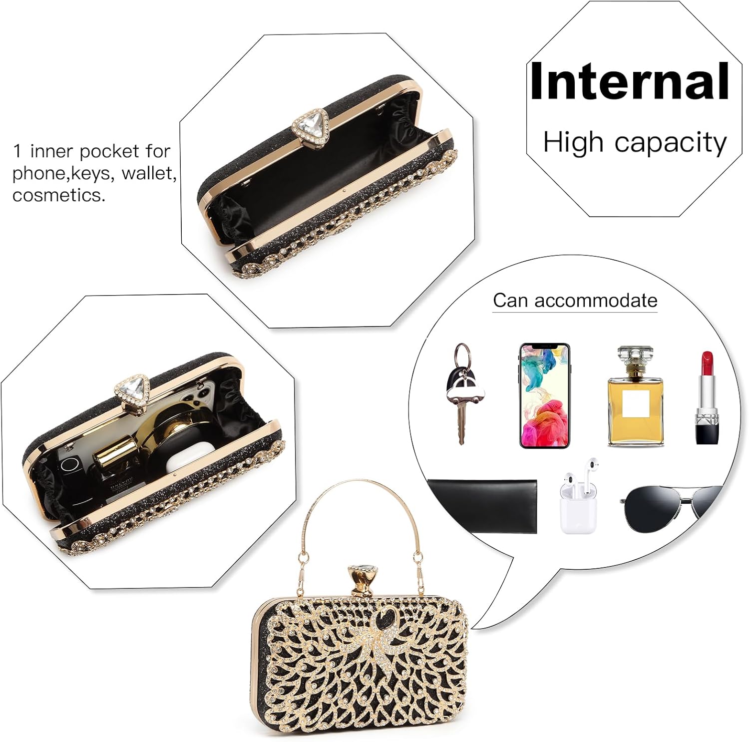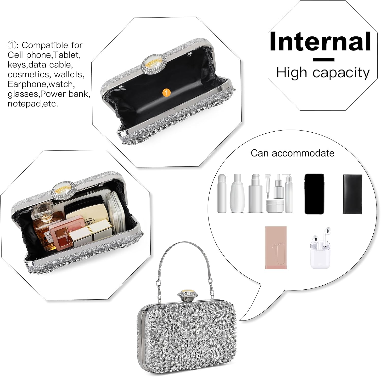 Clutch Bag Material: This clutch bag surface is a hand glued diamonds craft with a metal shell and polyester fiber lining. Enhance your noble profile, highlight your elegance.