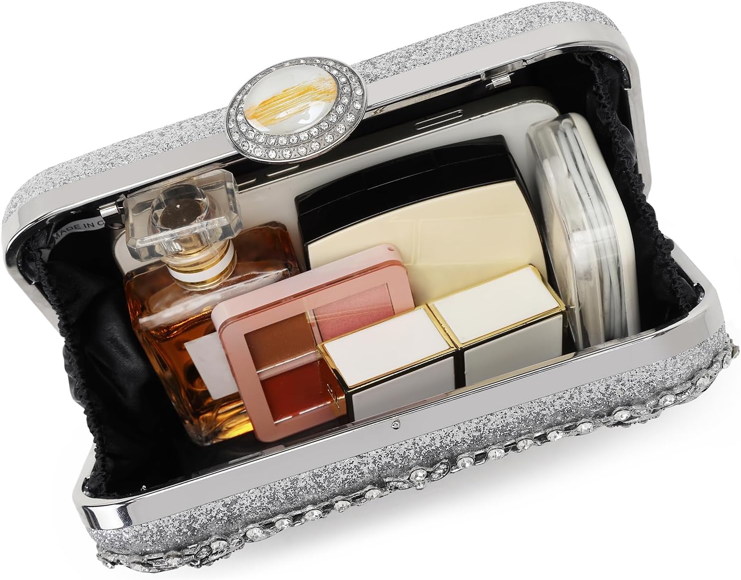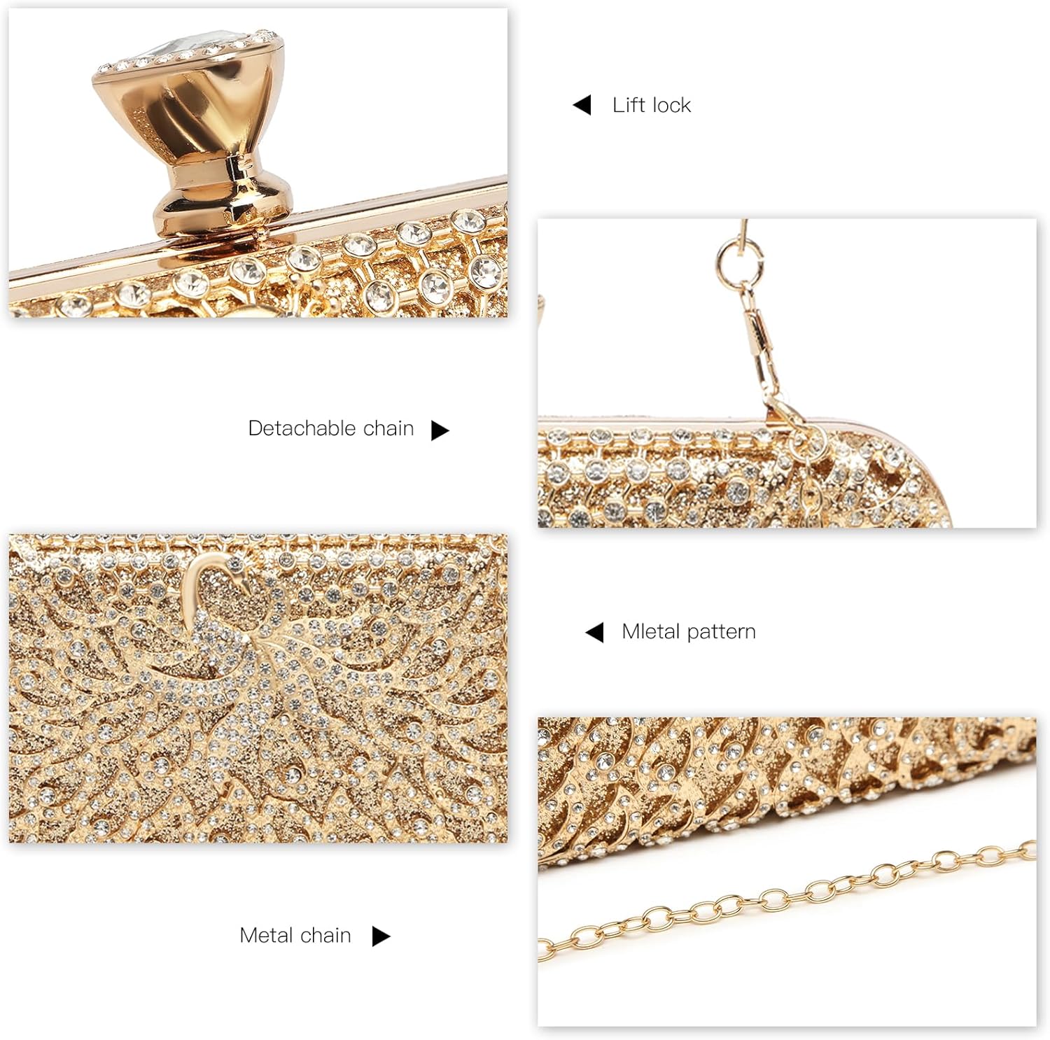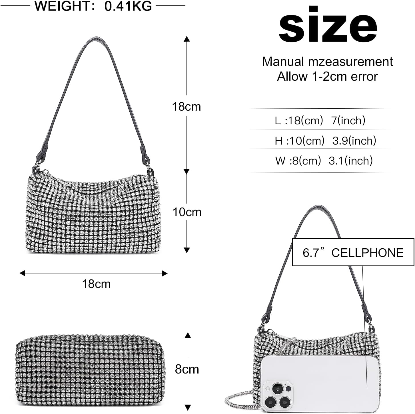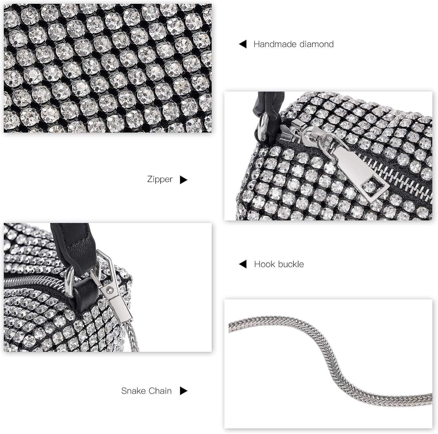 Clutch Bag Material: This clutch bag surface is a hand glued diamonds craft with a metal shell and polyester fiber lining. Enhance your noble profile, highlight your elegance.