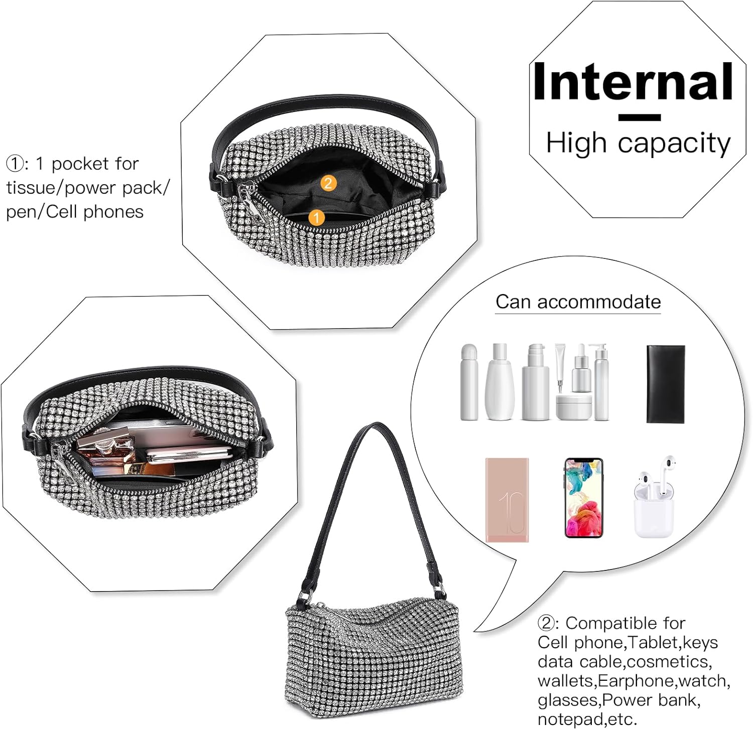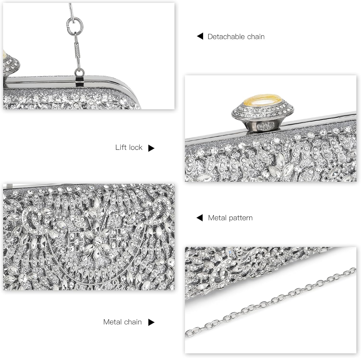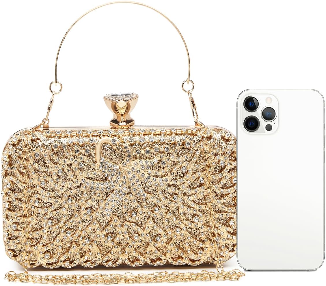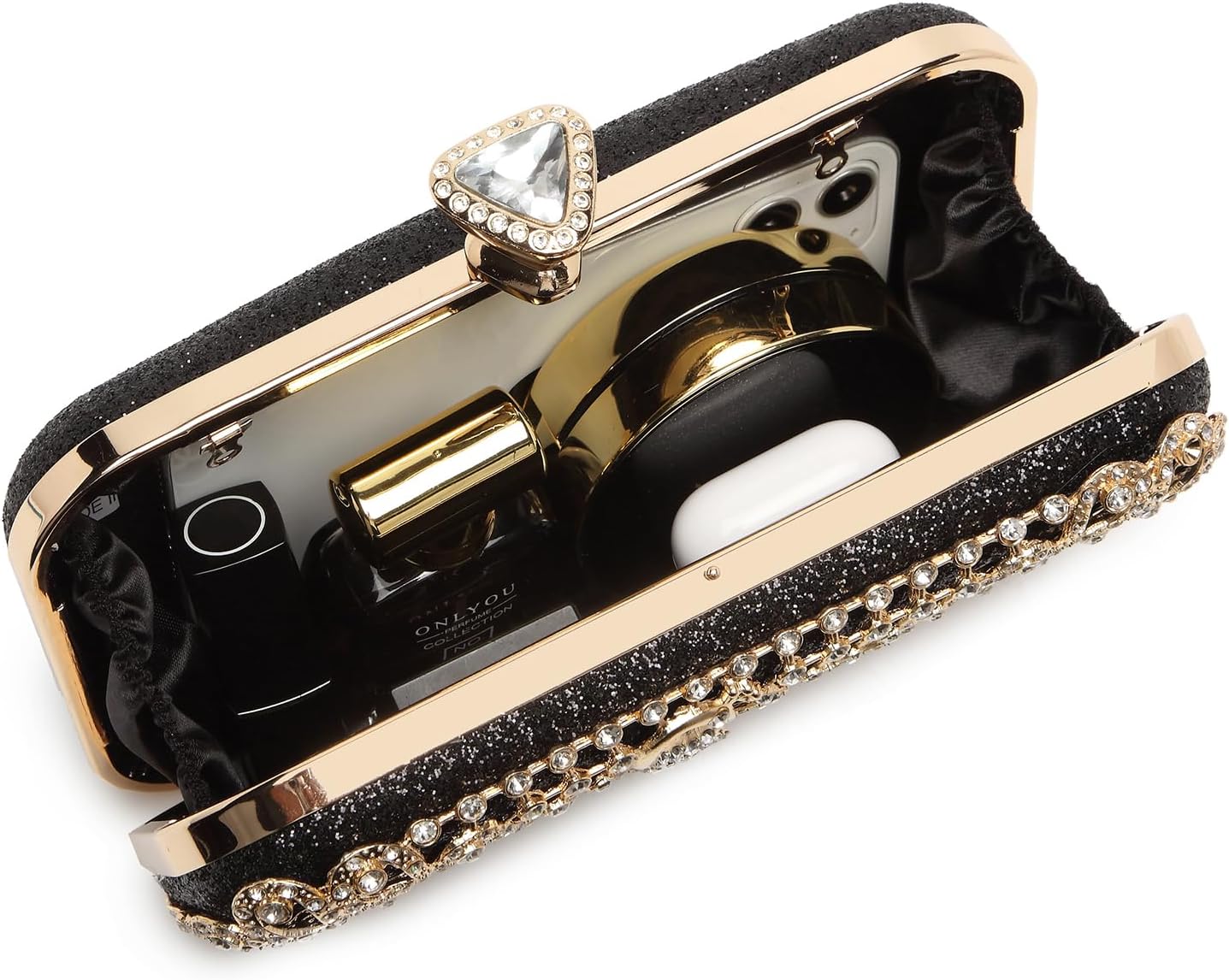 Clutch Bag Material: This clutch bag surface is a hand glued diamonds craft with a metal shell and polyester fiber lining. Enhance your noble profile, highlight your elegance.