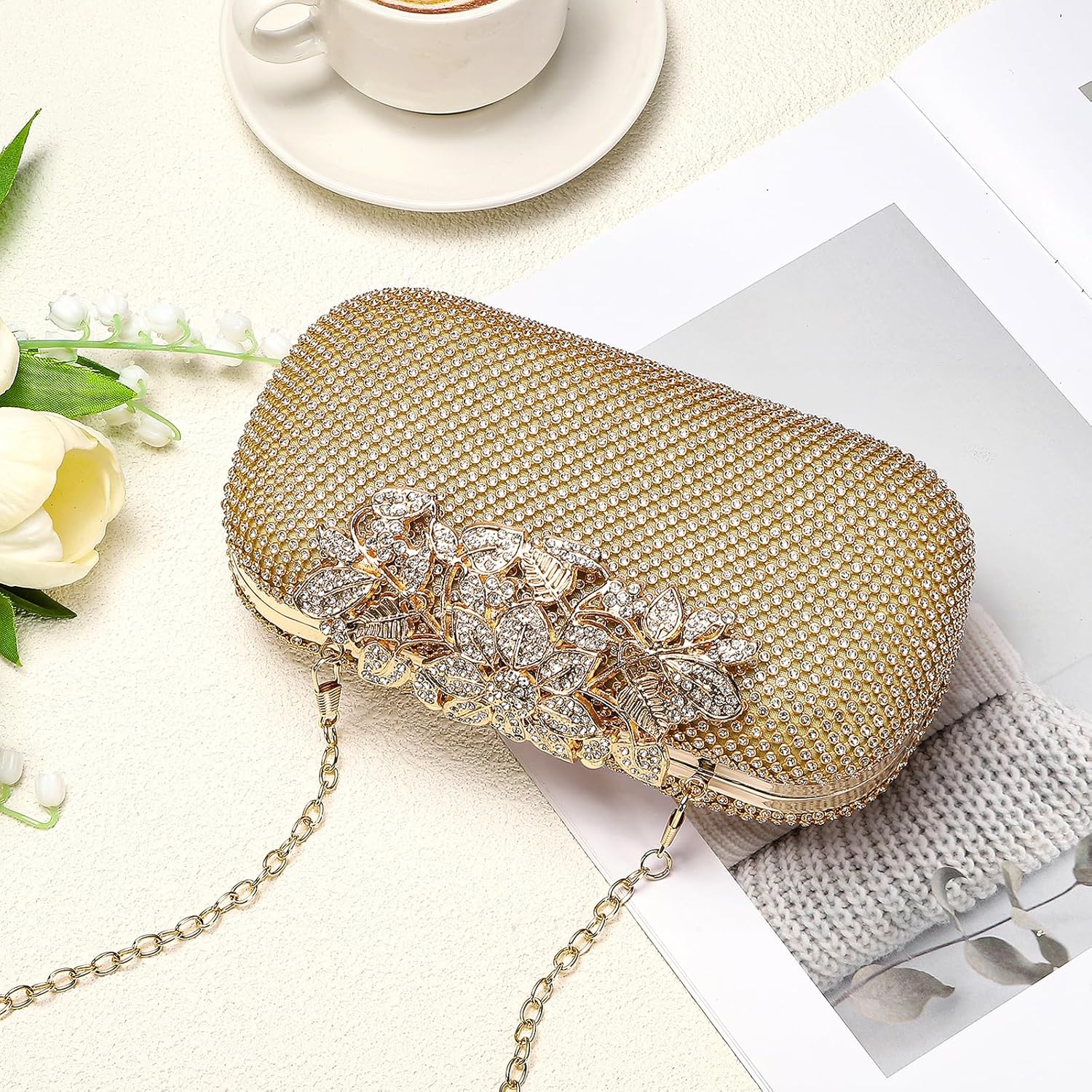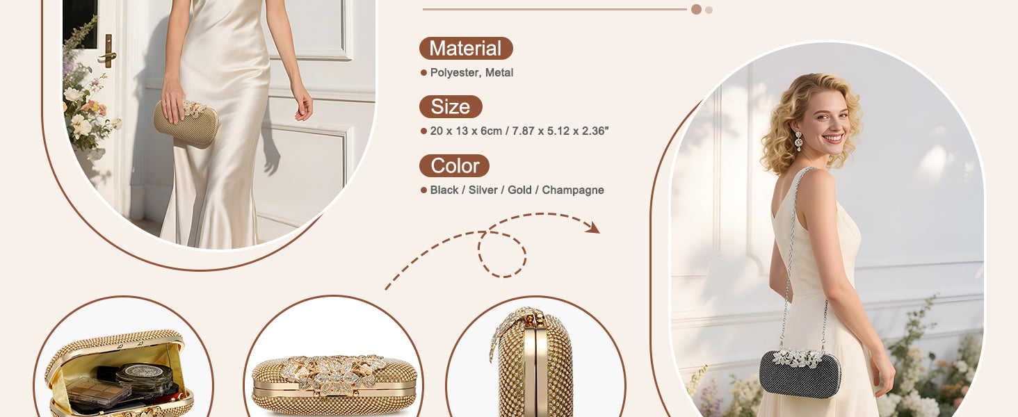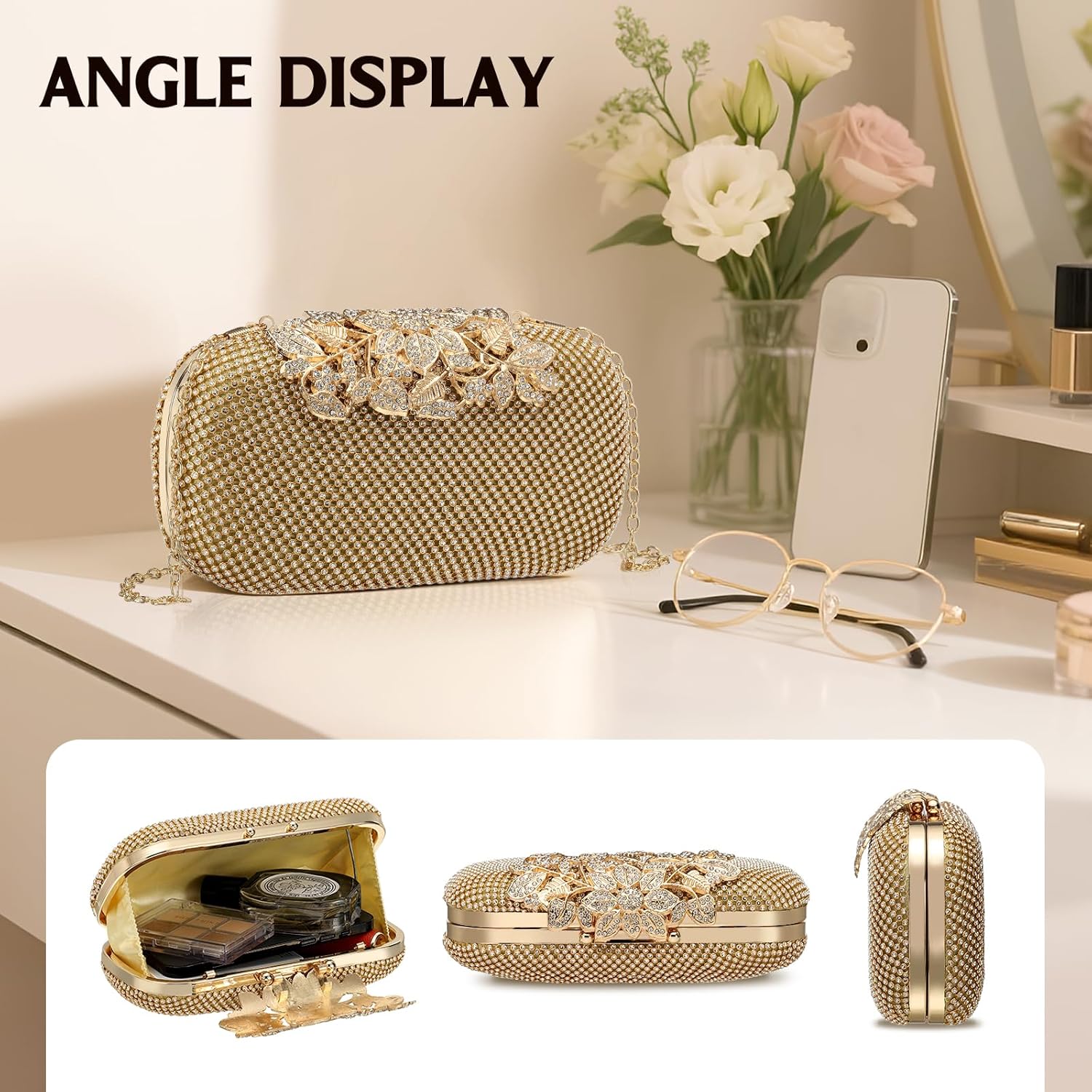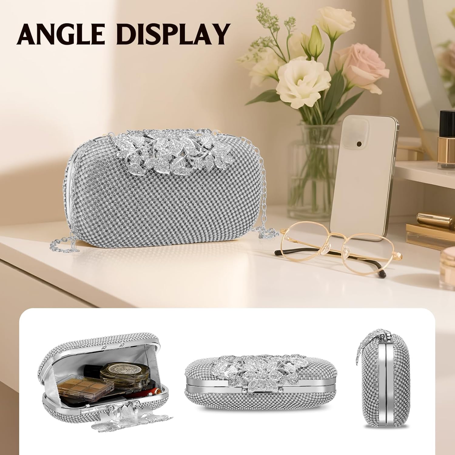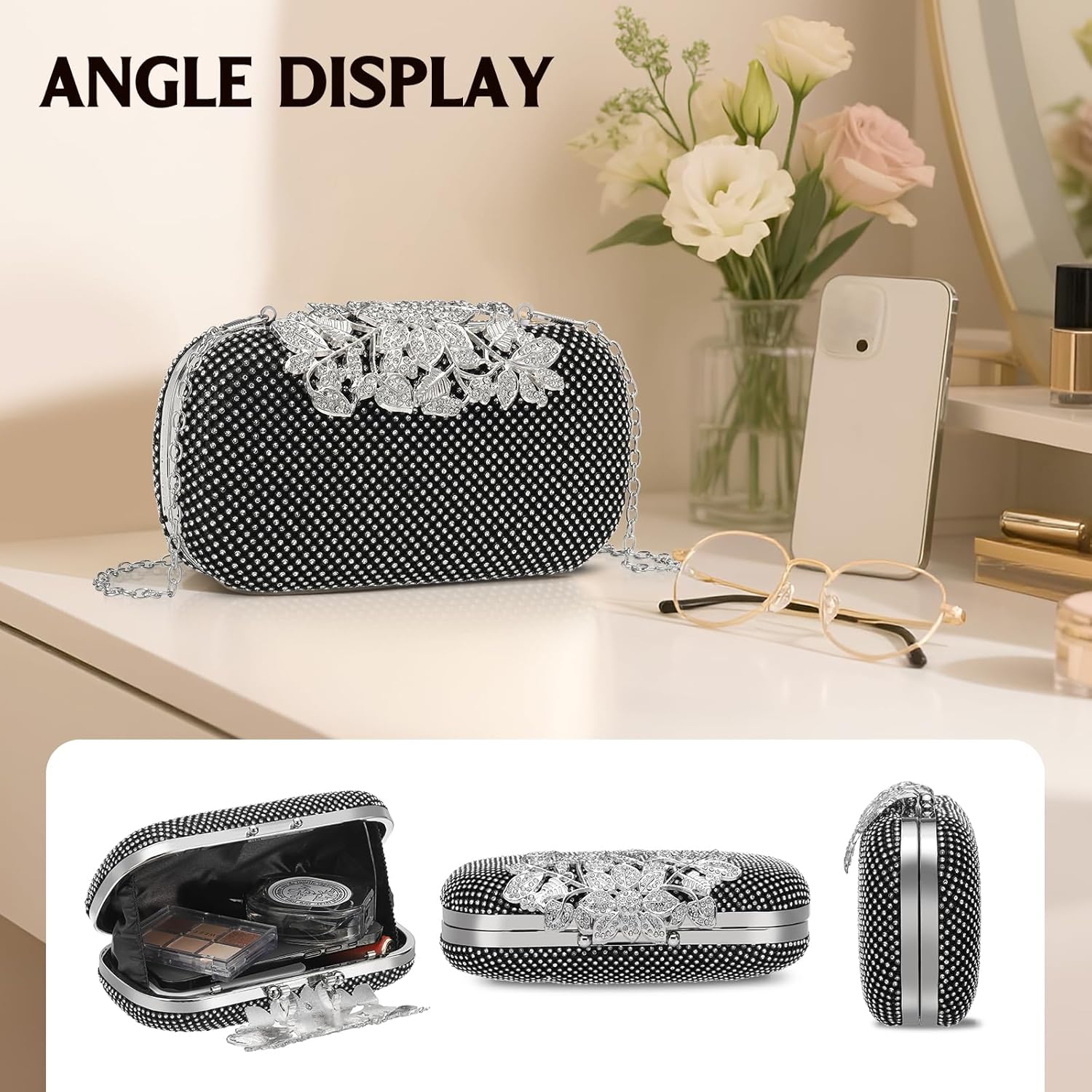 Clutch Purse Sparkly Rhinestone Square Bags for Women, Vintage Crystal Clasp Handbag