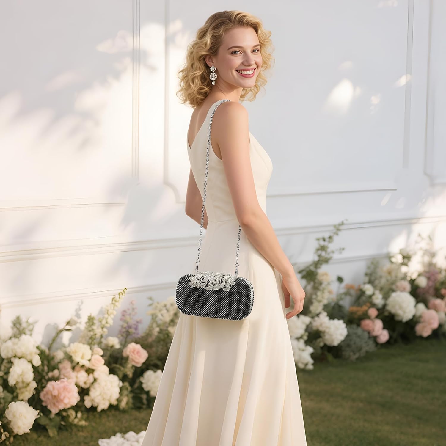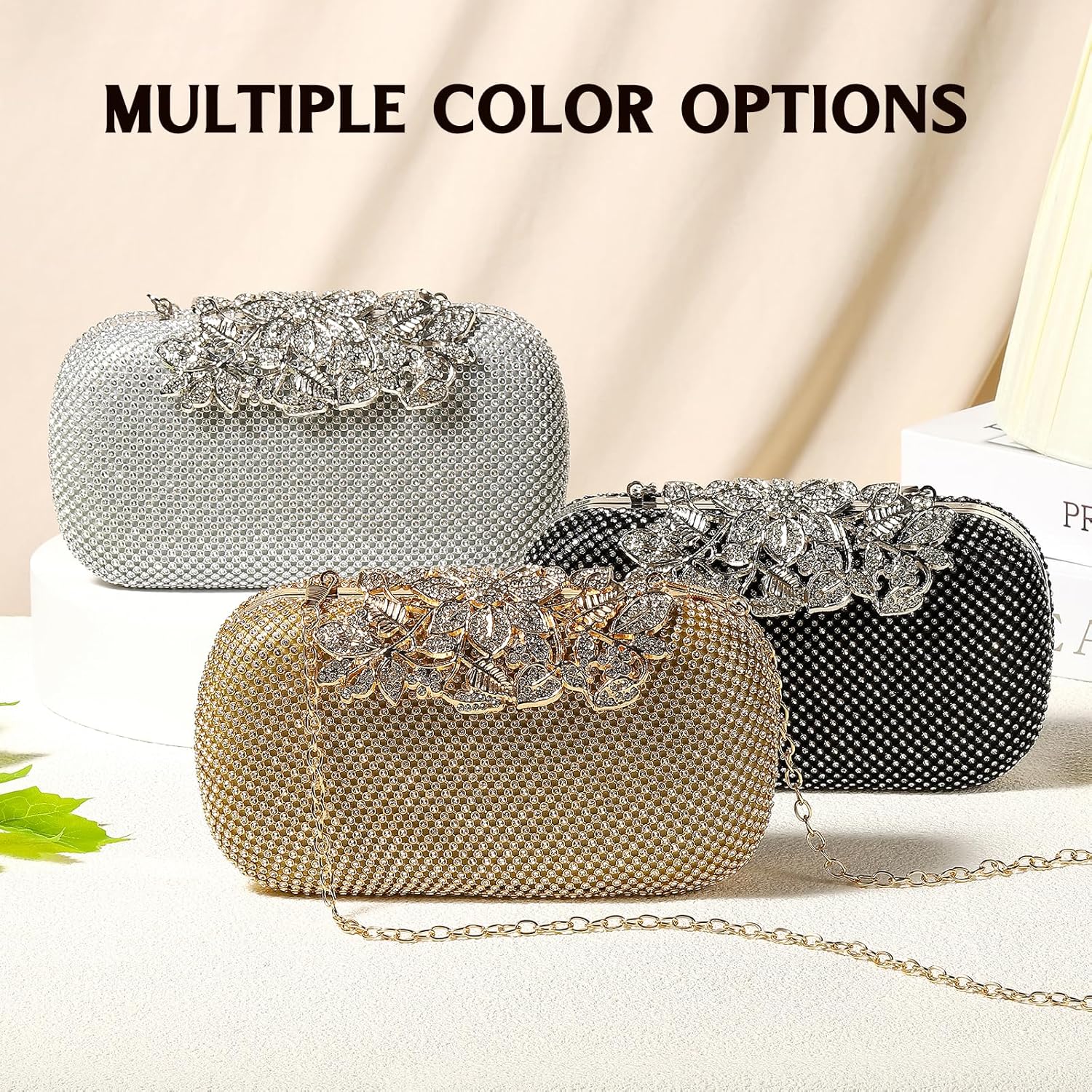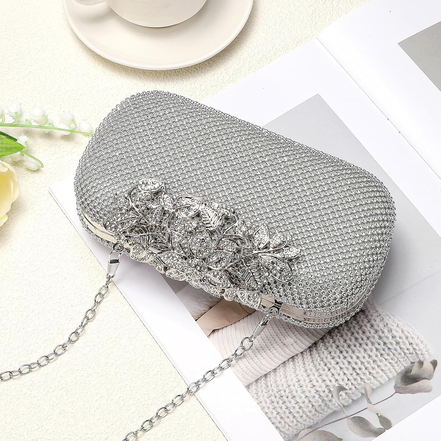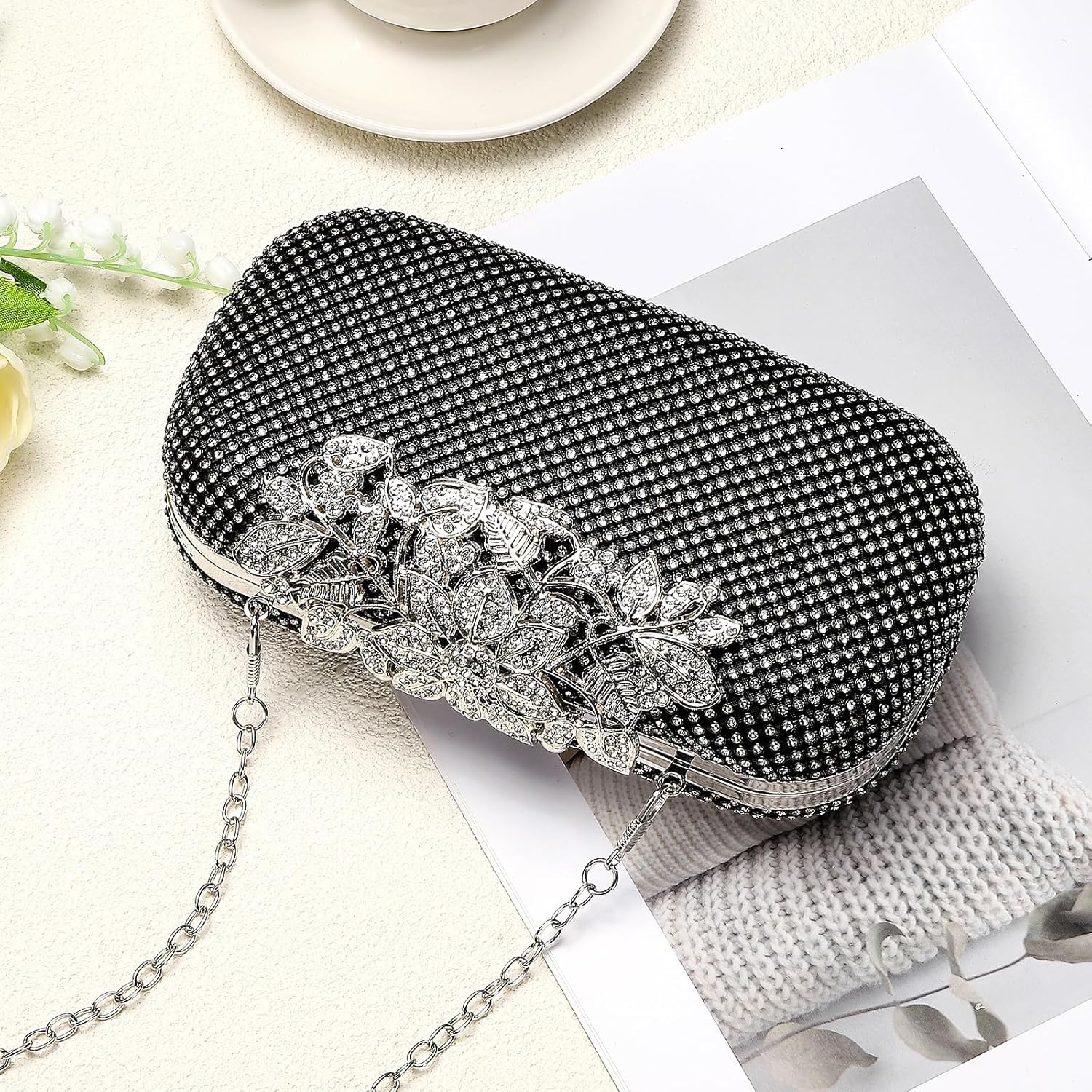 Clutch Purse Sparkly Rhinestone Square Bags for Women, Vintage Crystal Clasp Handbag