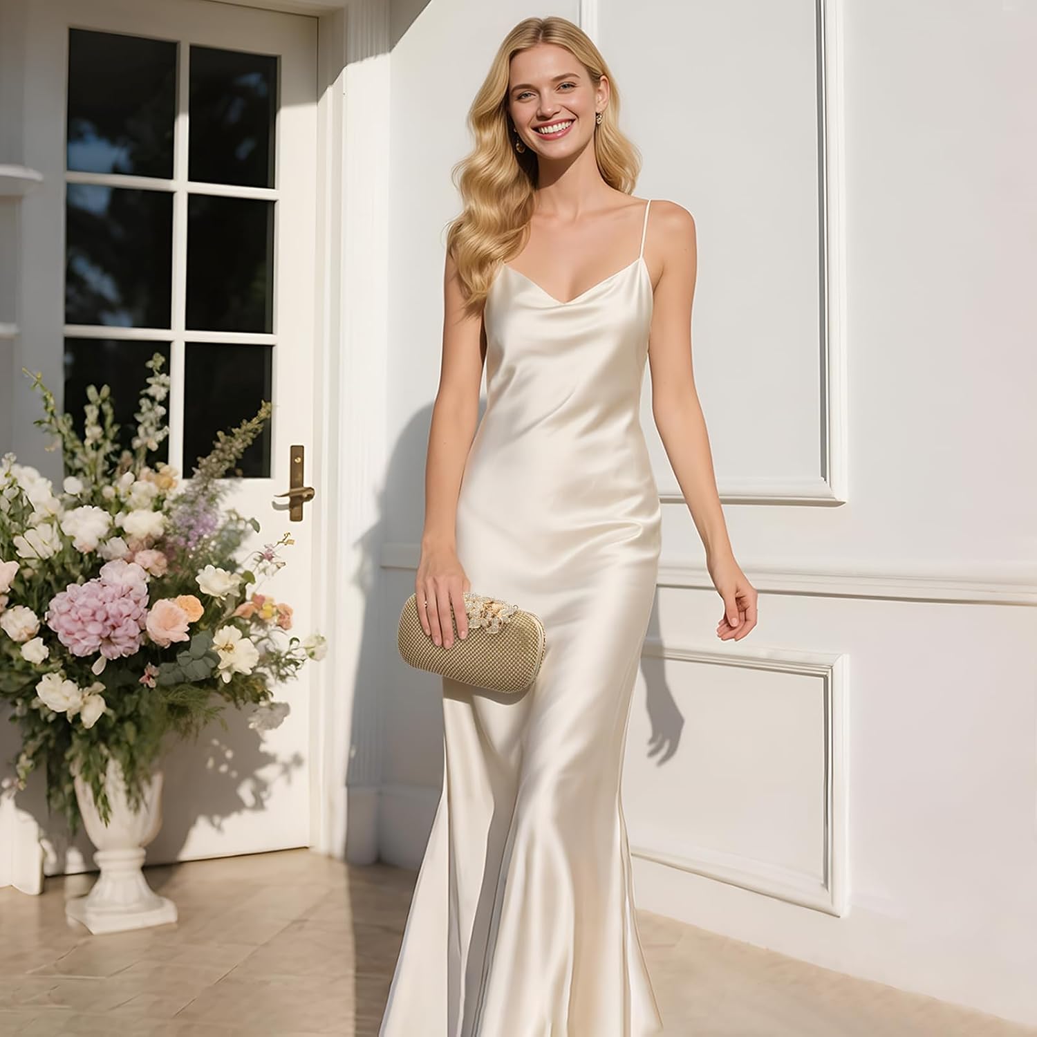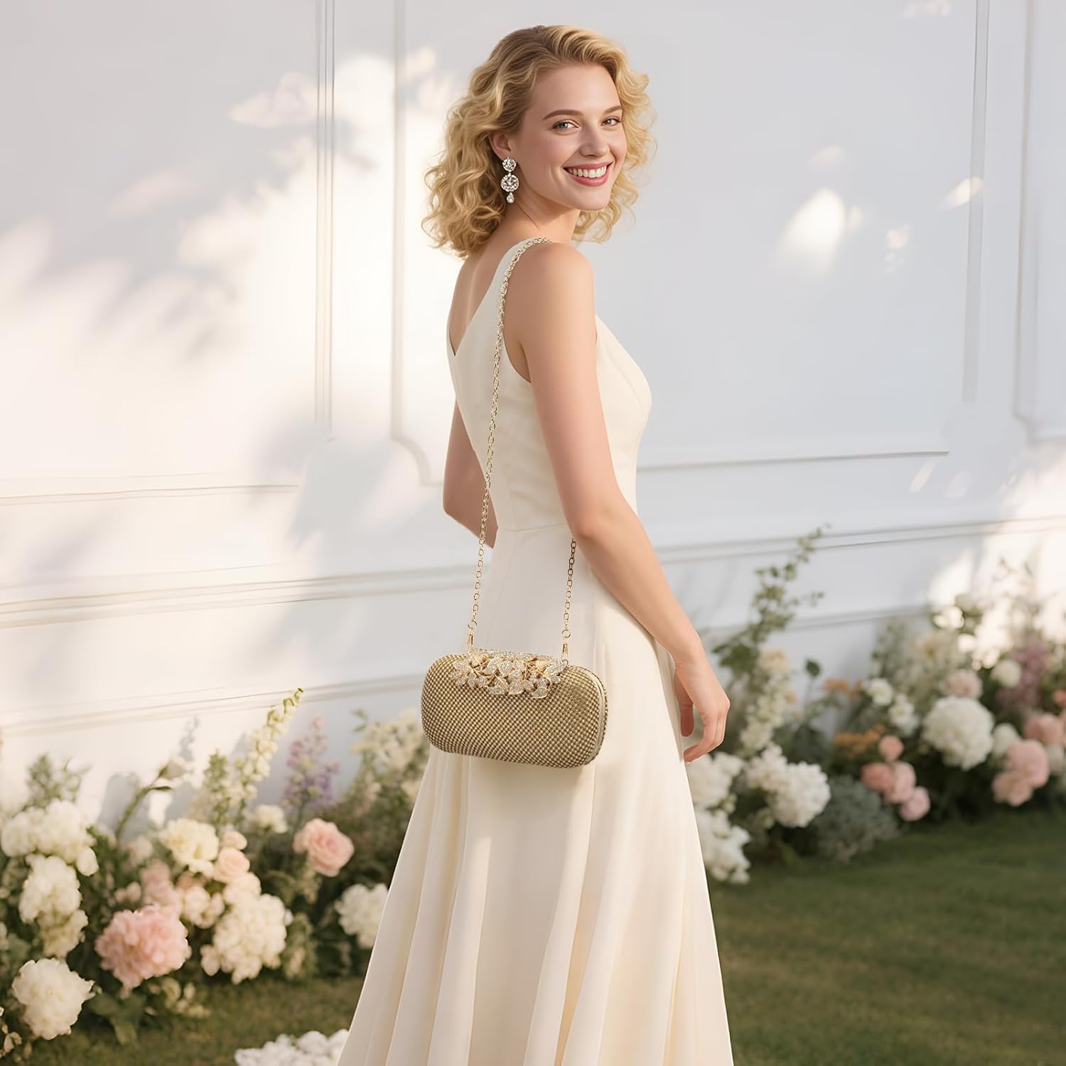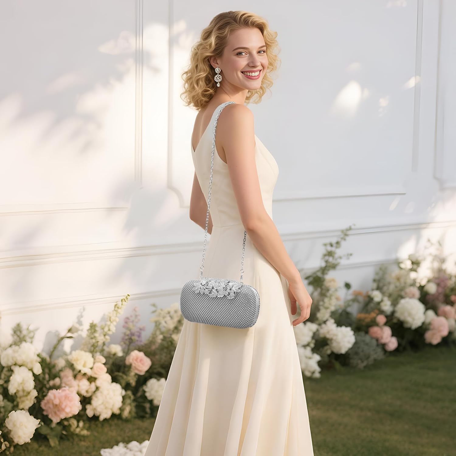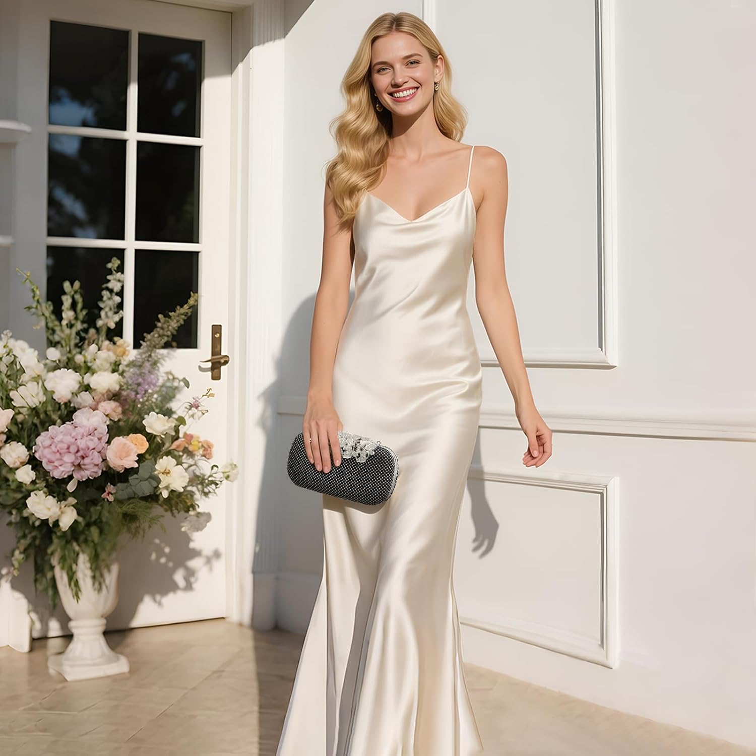 Clutch Purse Sparkly Rhinestone Square Bags for Women, Vintage Crystal Clasp Handbag