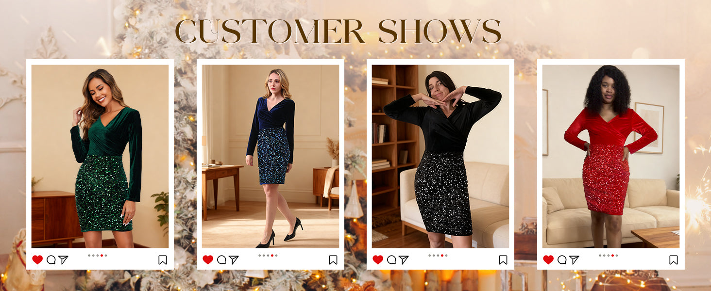 Luxurious Material: The Women's holiday party dress is made of comfortable, stretchy and soft velvet fabric with glitter sequins, ensuring you shine and warm at any gathering. Perfect for formal or semi formal events in fall and winter, elegant yet modest