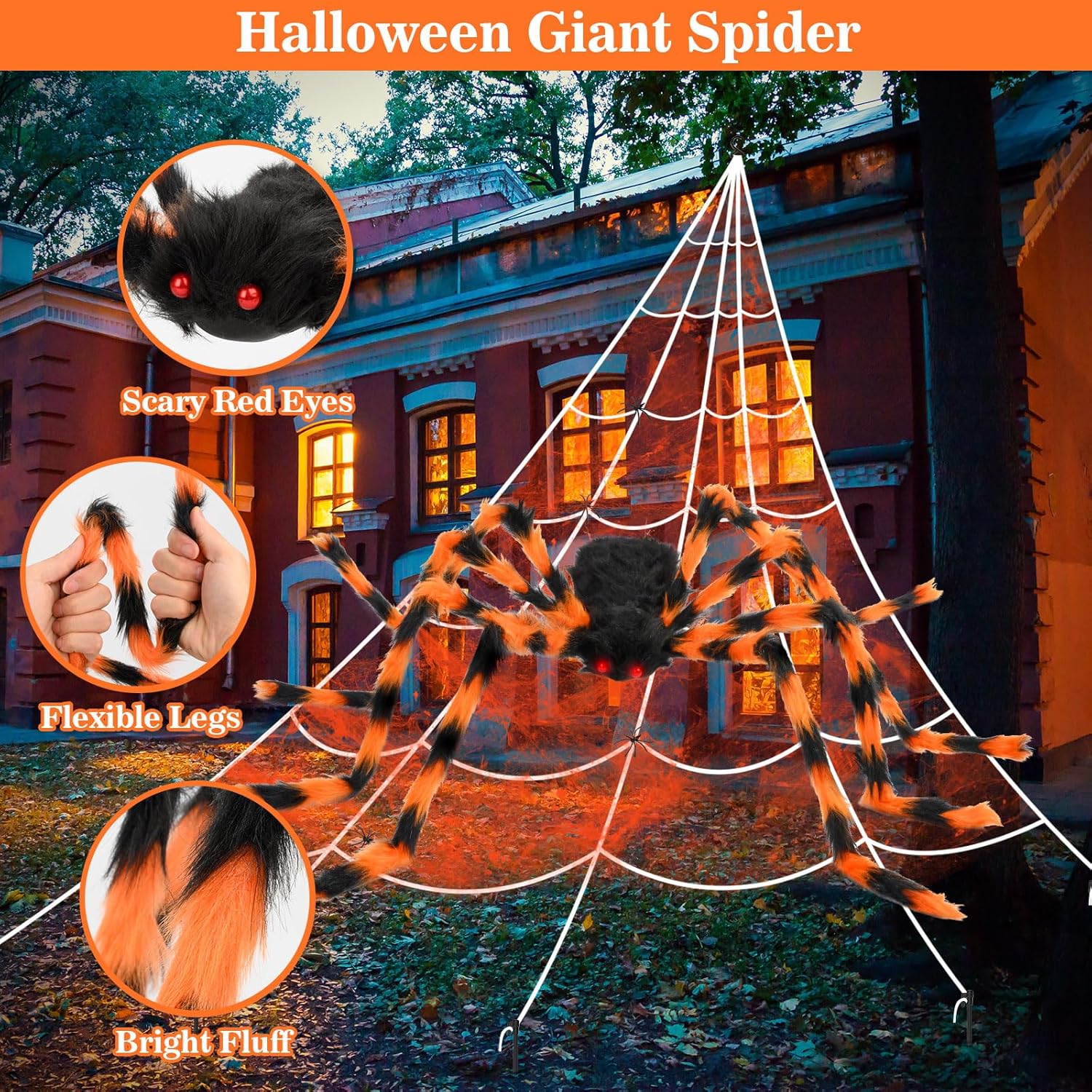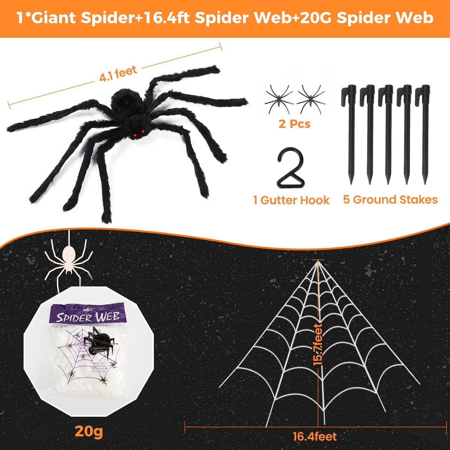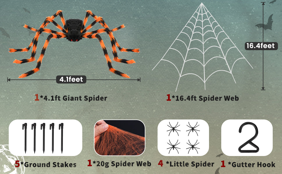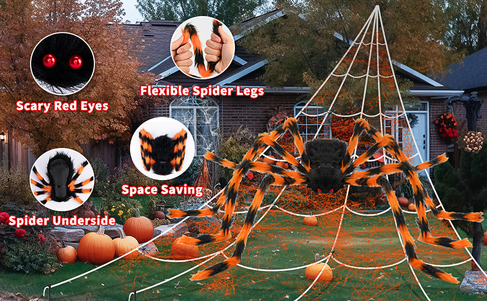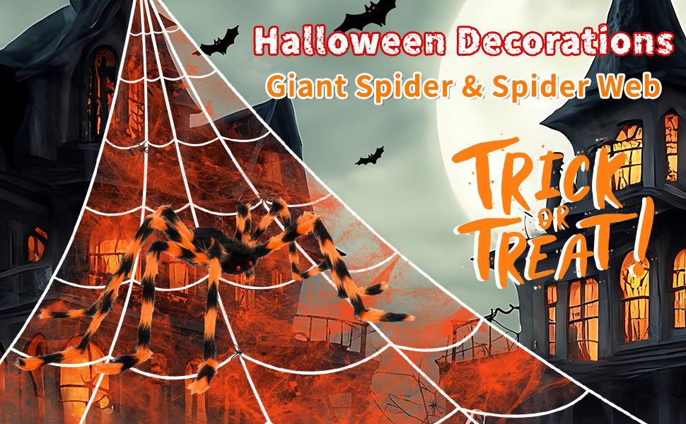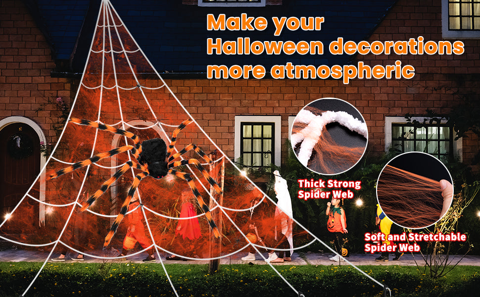 Halloween Decorations Spider Web, 50'' Giant Spider + 200'' Triangular Giant Spider Web and 20G Spider Web, Halloween Spider for Indoor Outdoor Scary Haunted House Spider Web Party Halloween Yard
