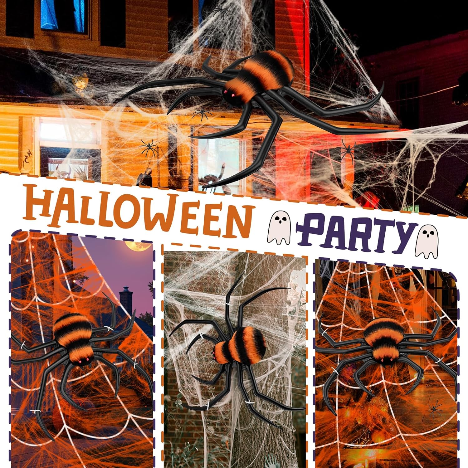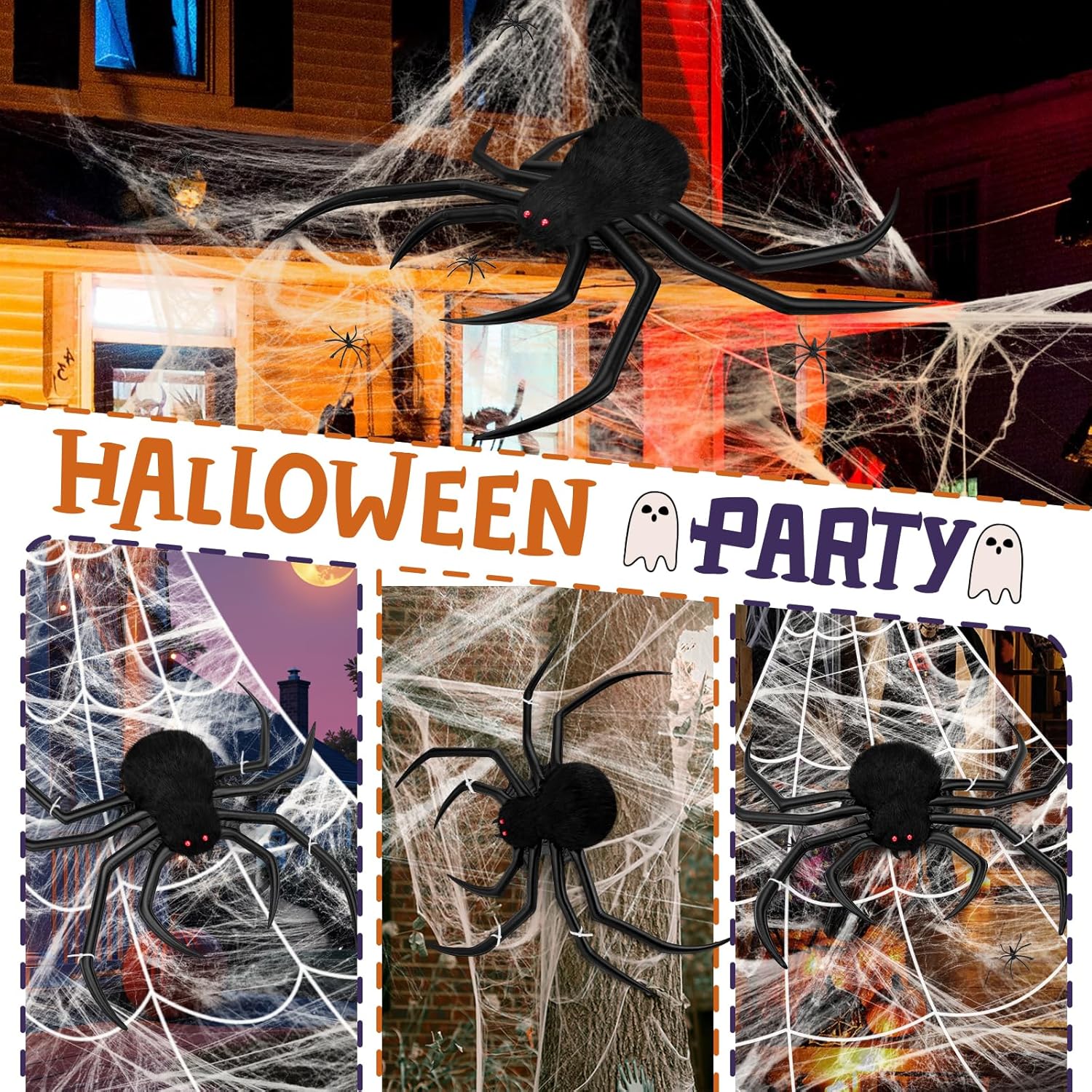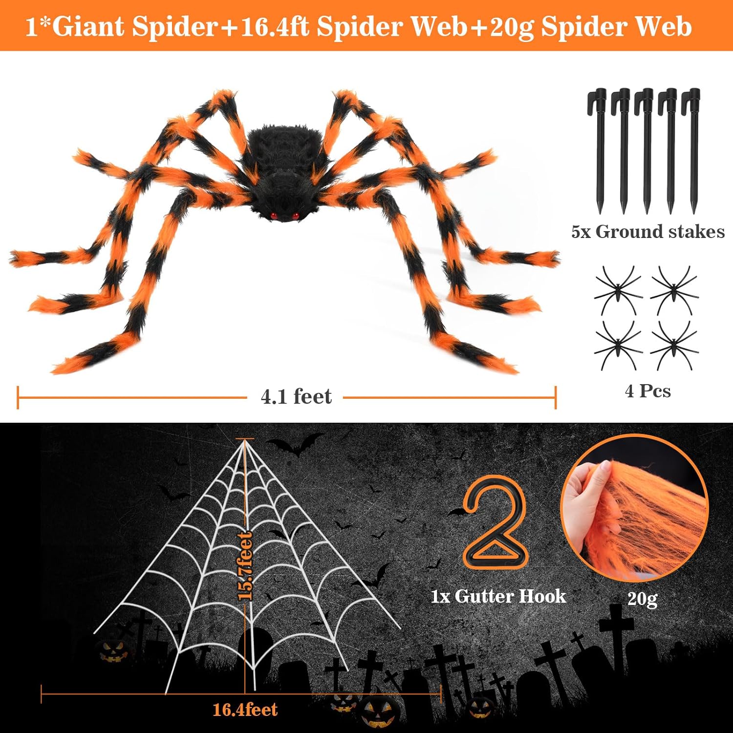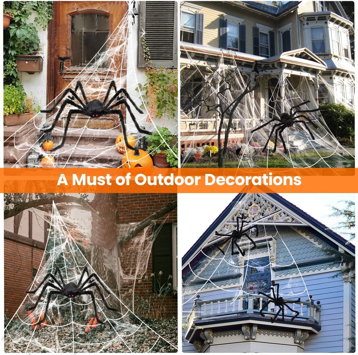 Halloween Decorations Spider Web, 50'' Giant Spider + 200'' Triangular Giant Spider Web and 20G Spider Web, Halloween Spider for Indoor Outdoor Scary Haunted House Spider Web Party Halloween Yard