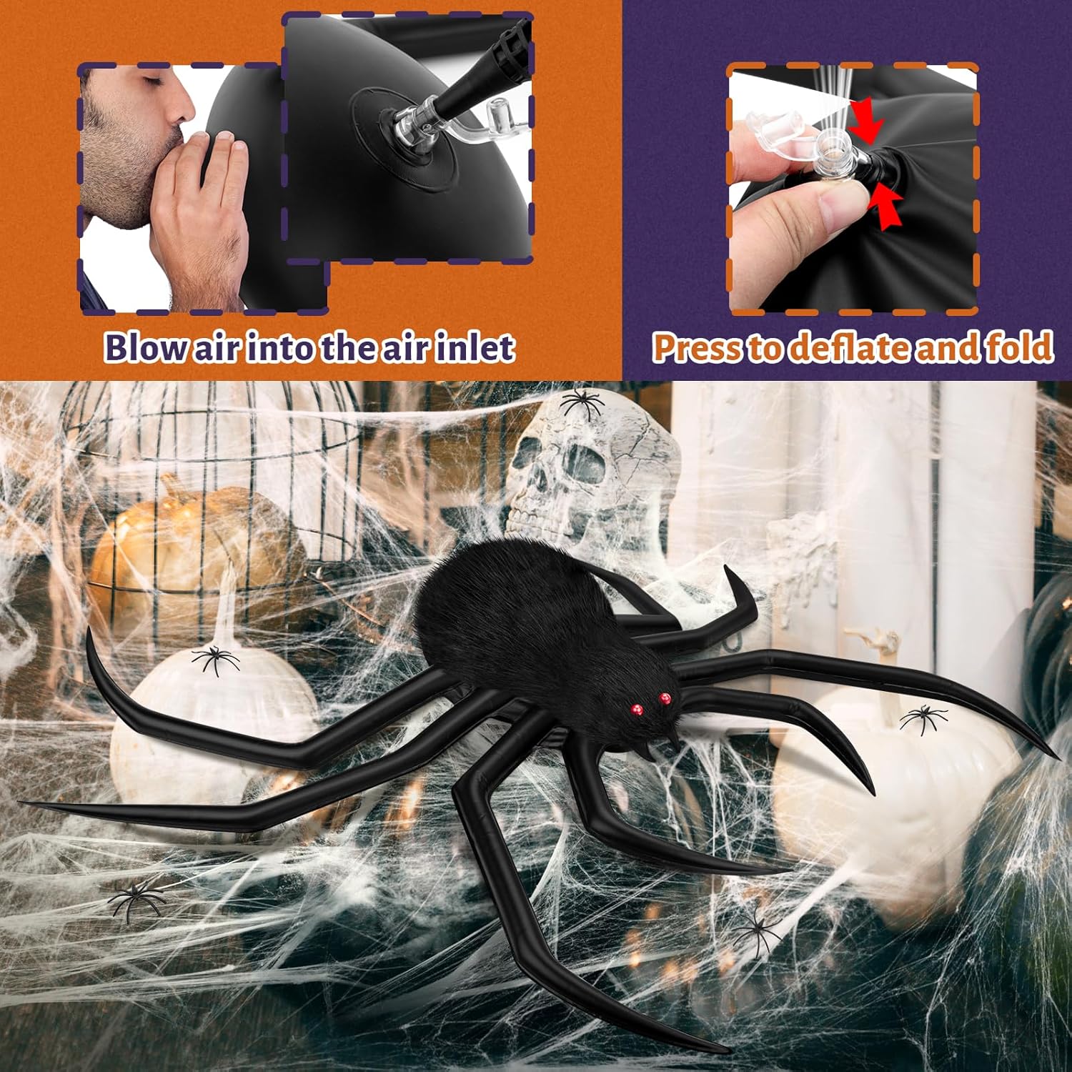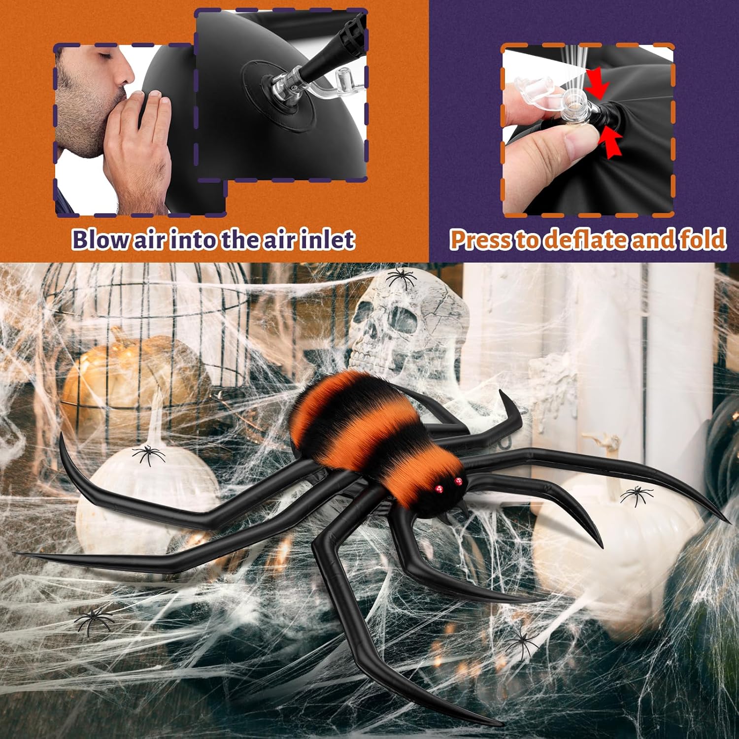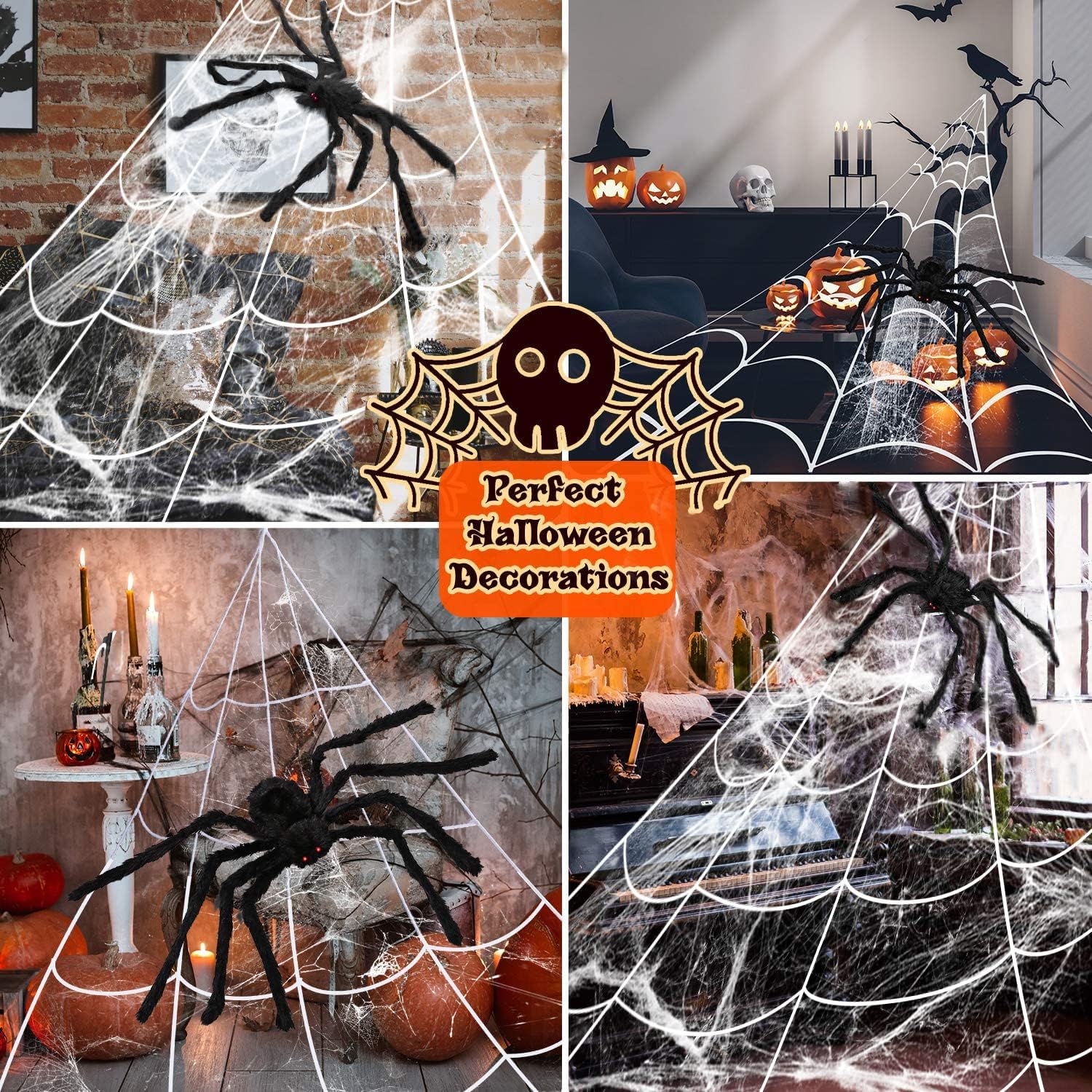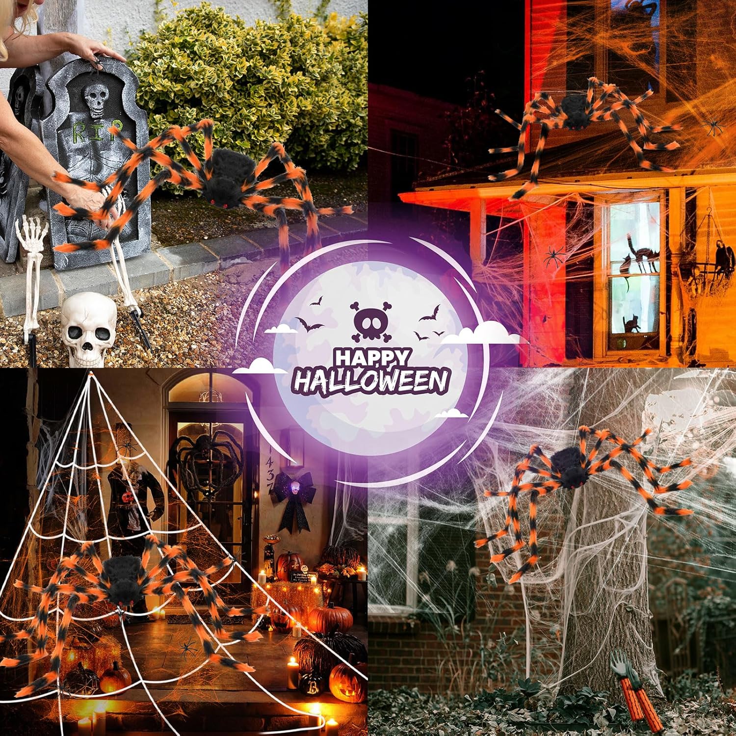 Halloween Decorations Spider Web, 50'' Giant Spider + 200'' Triangular Giant Spider Web and 20G Spider Web, Halloween Spider for Indoor Outdoor Scary Haunted House Spider Web Party Halloween Yard