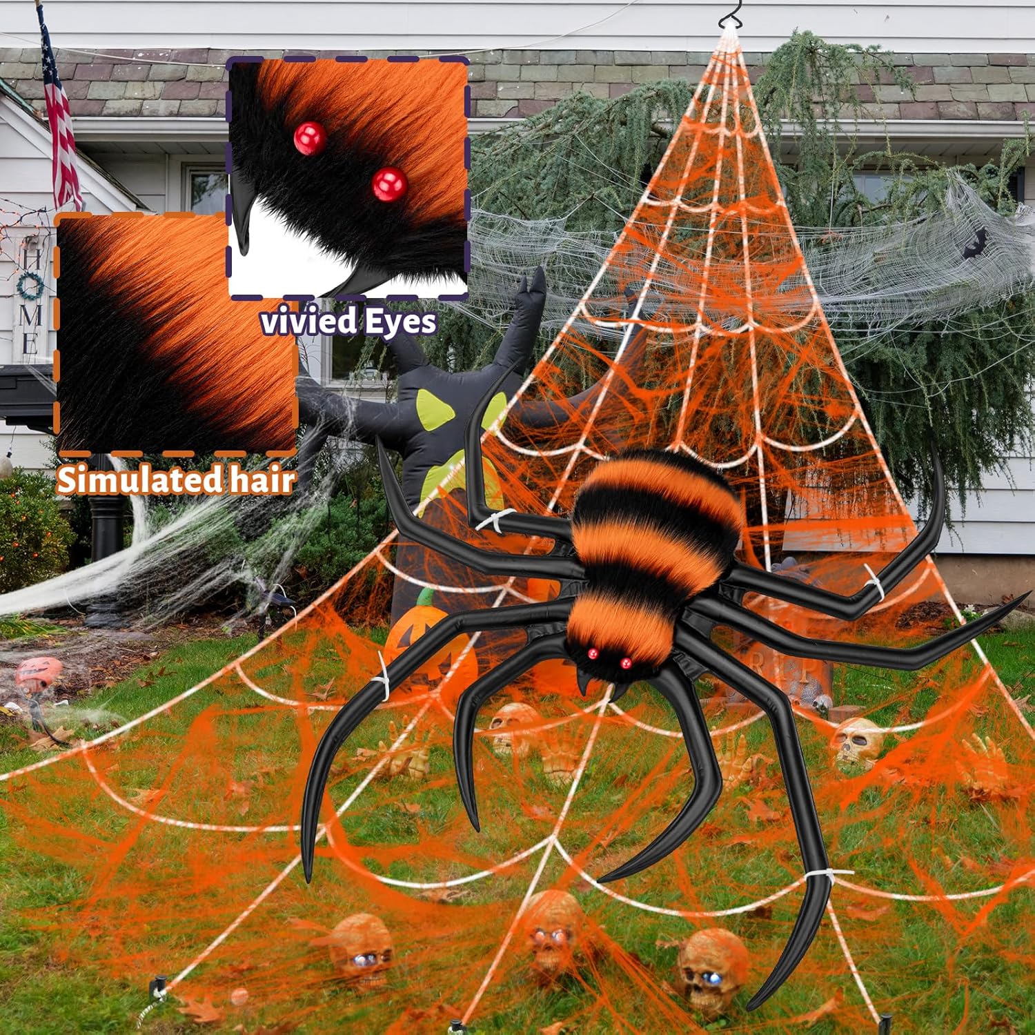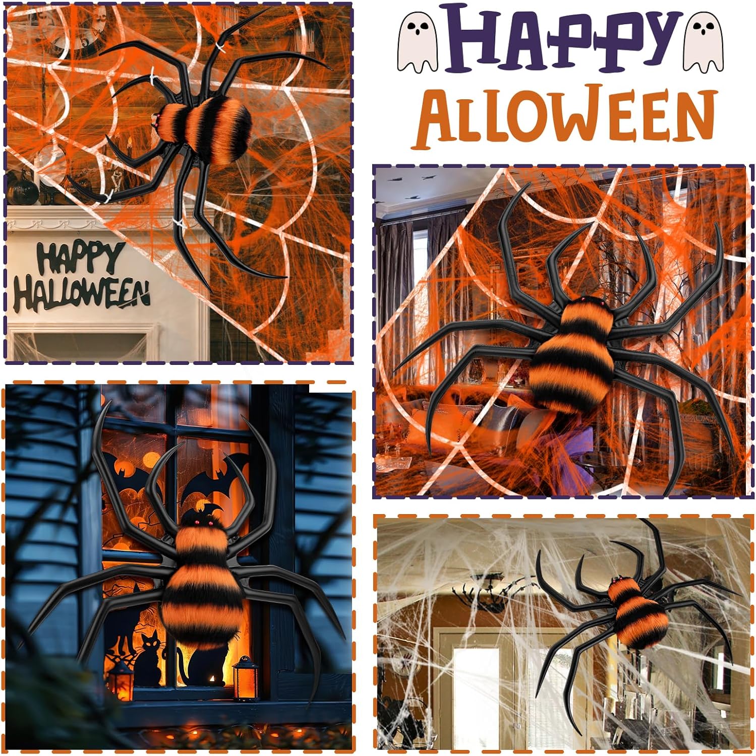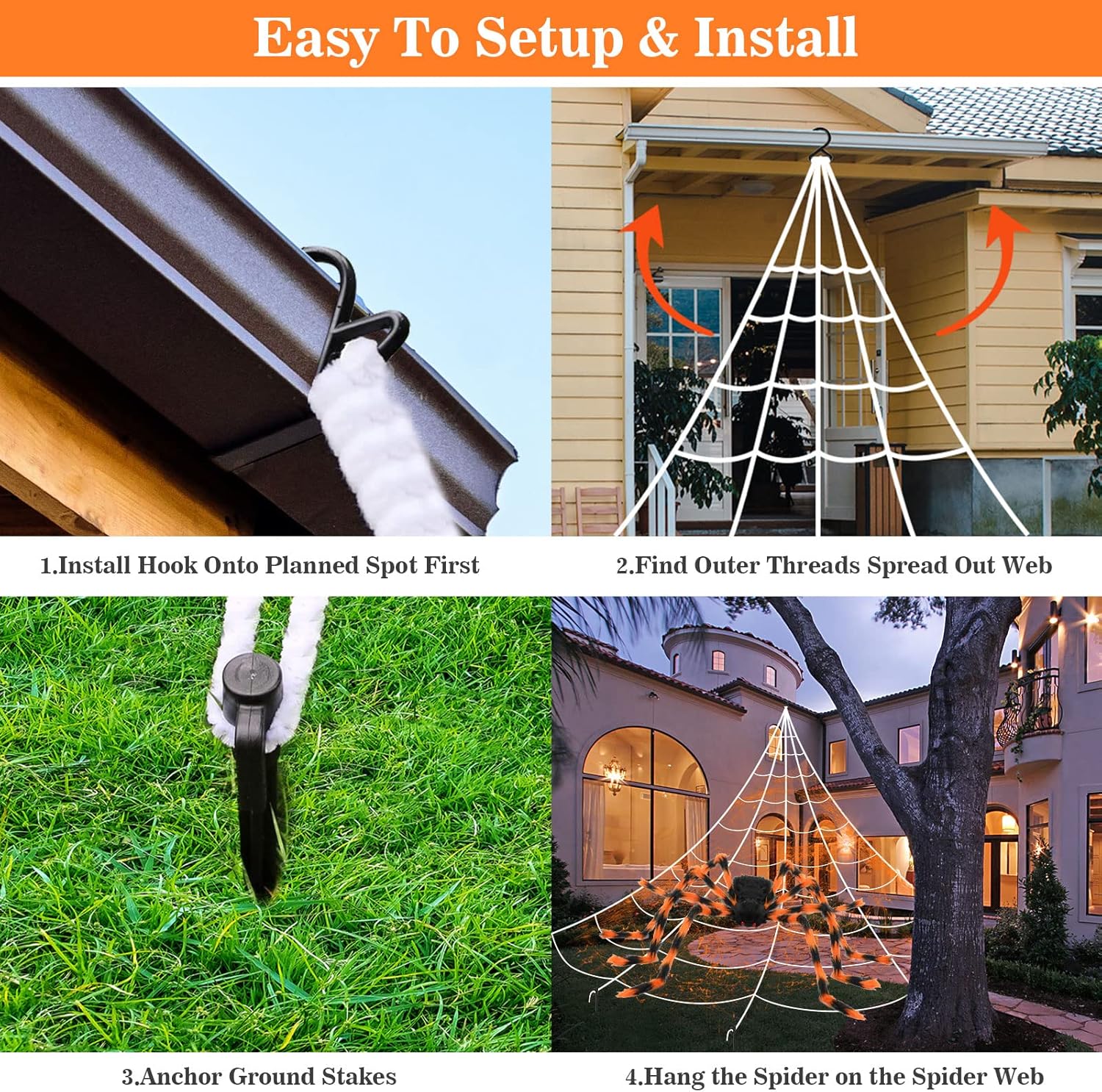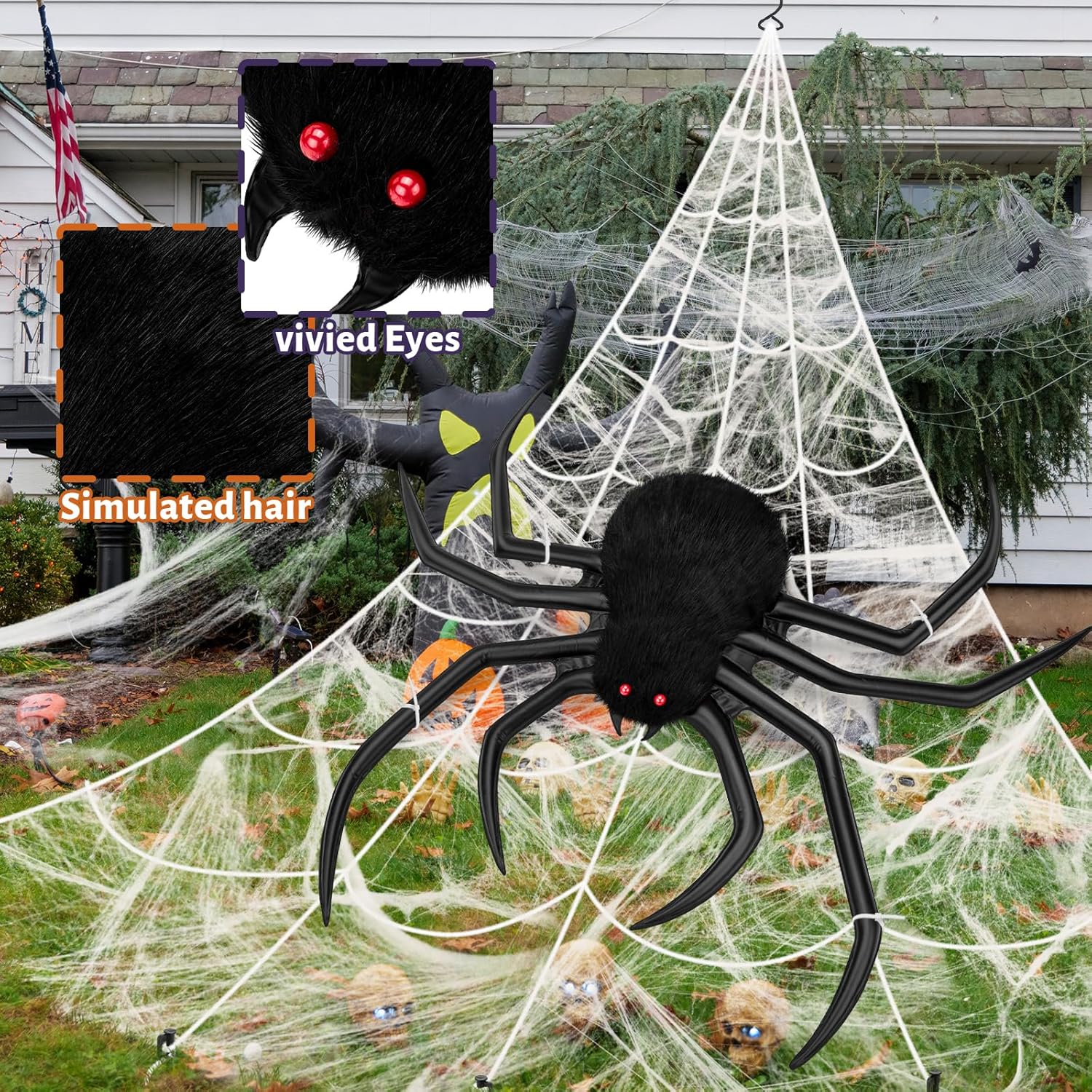 - 【Giant Spider Web Set for Halloween Decorations】1 Triangle Giant spider web (16.4ft*15.4ft) + 1 Huge Halloween colorful spiders...