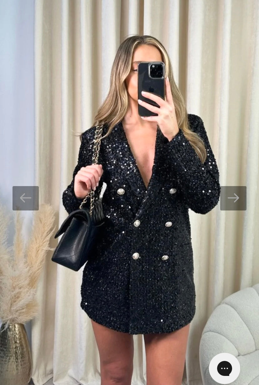 Step out in style and sparkle in this glamorous Mila black mini dress! Featuring a full...
