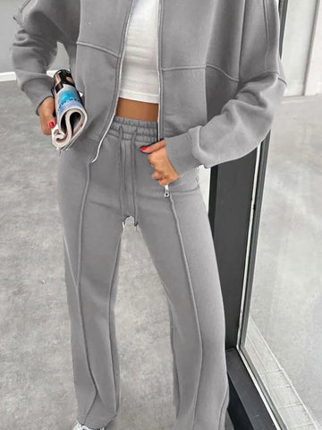 Baseball Collar Zip Up Outerwear and Drawstring Pants Set