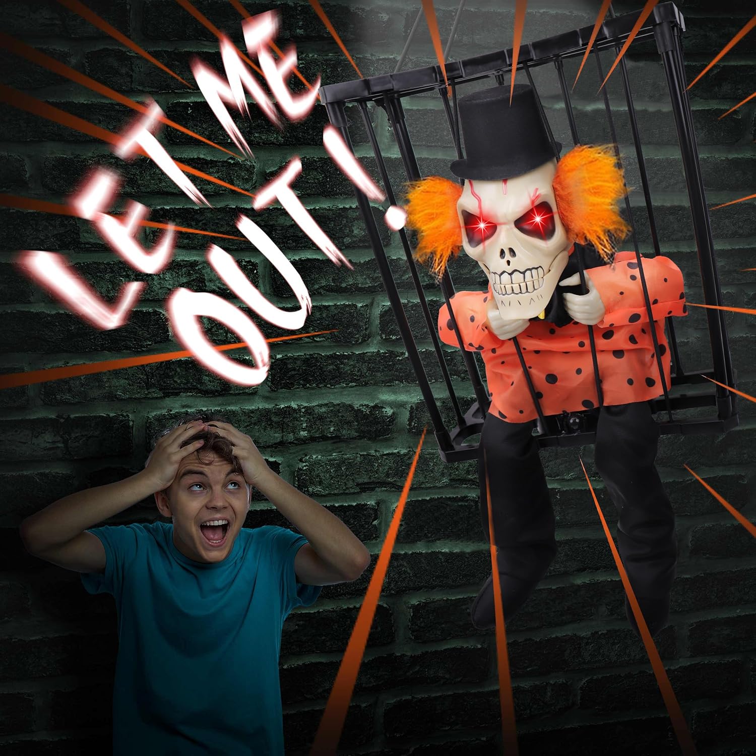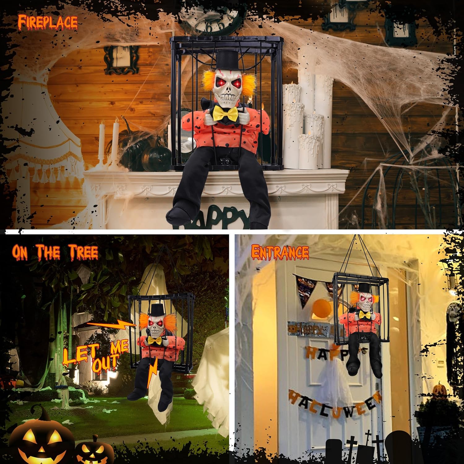 Spooky and Realistic-Brace yourself for an eerie encounter with the spirit funny Halloween animatronics ghost! Designed with infrared and light sensors, our prison cage ghost springs to life, its glowing eyes and extended head accompanied by a bone-chilling scream“LET ME OUT”. Transform your space into a truly creepy and lifelike with the super scary hanging Halloween decorations outdoor indoor.