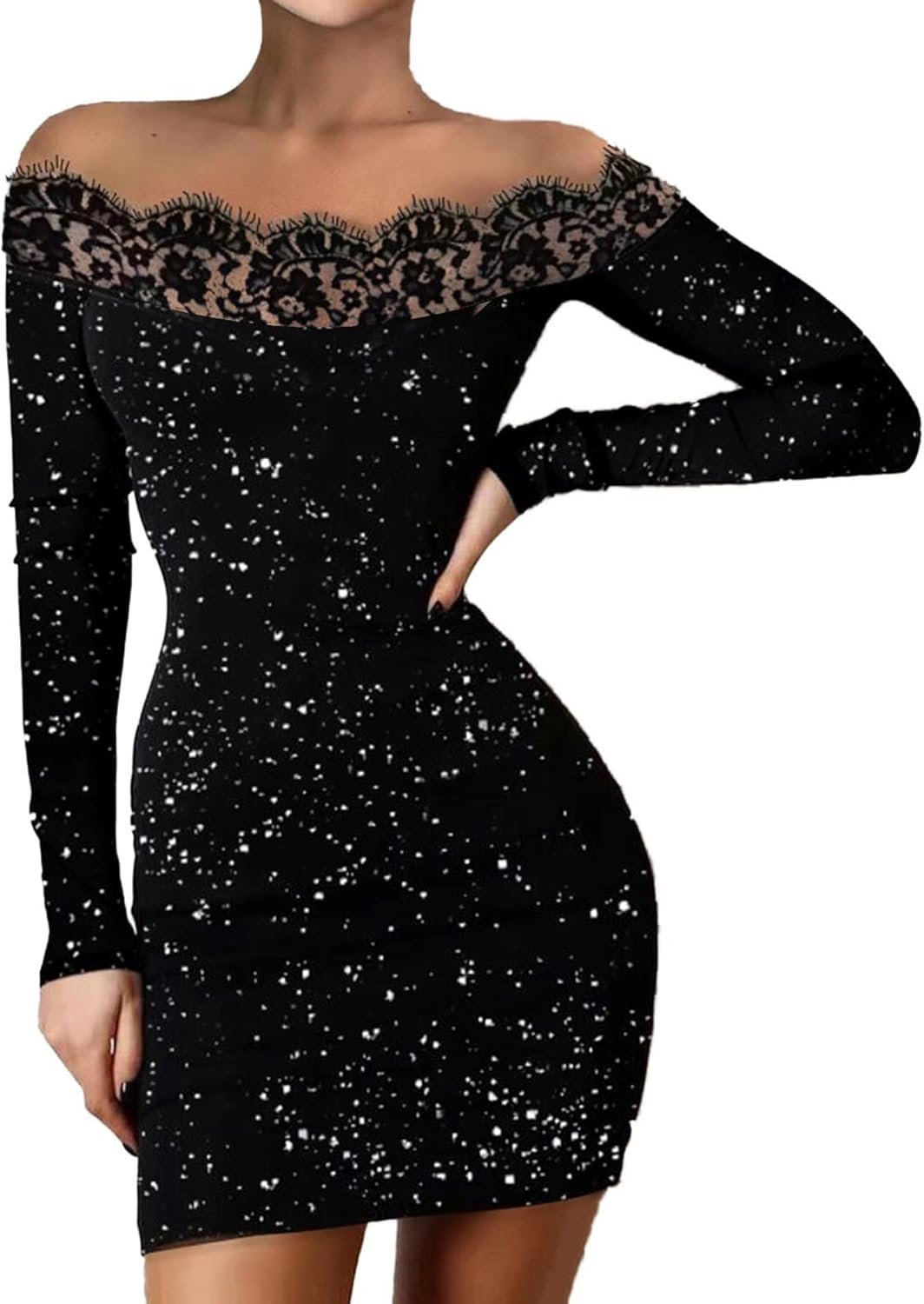 Sequin Dresses for Women Off Shoulder Bodycon Mini Dress Elegant Long Sleeve Wrap Dress Sparkly Glitter Evening Dress Party Disco Club Dress Sexy Cocktail Clubwear Wedding Guest Outfit - S is backordered. It will be shipped when back in stock.