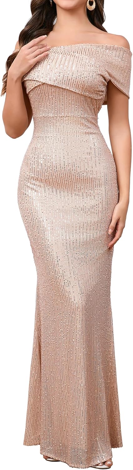 Sequins Dress Off Shoulder Bodycon Dress Sleeveless Mermaid Dress Sparkly Maxi Dress Casual Party Cocktail Dress