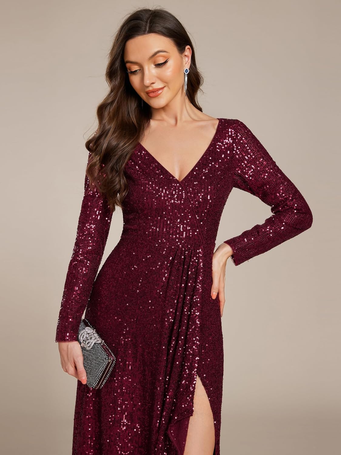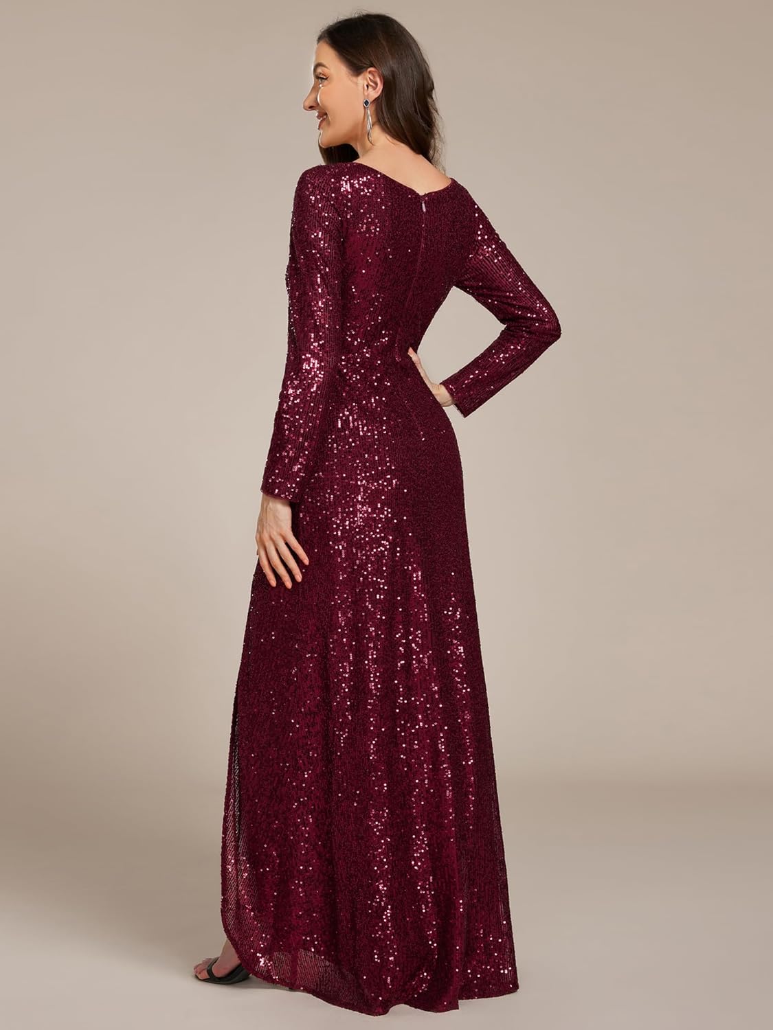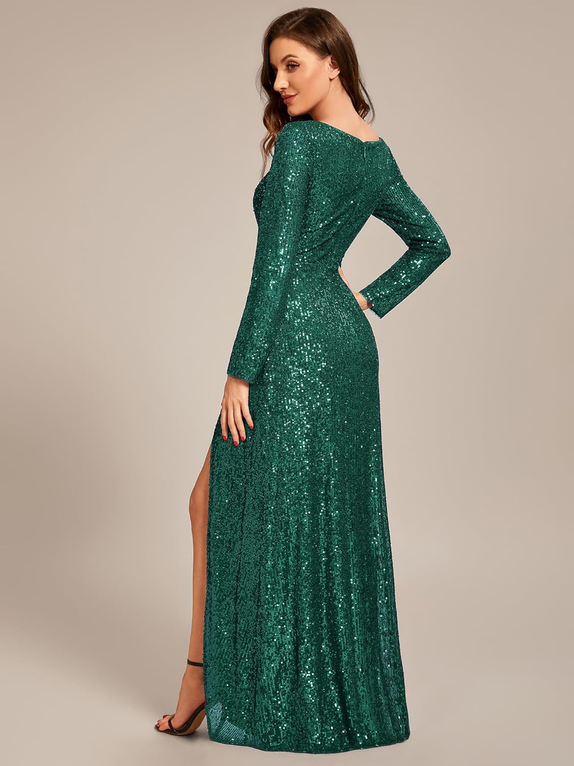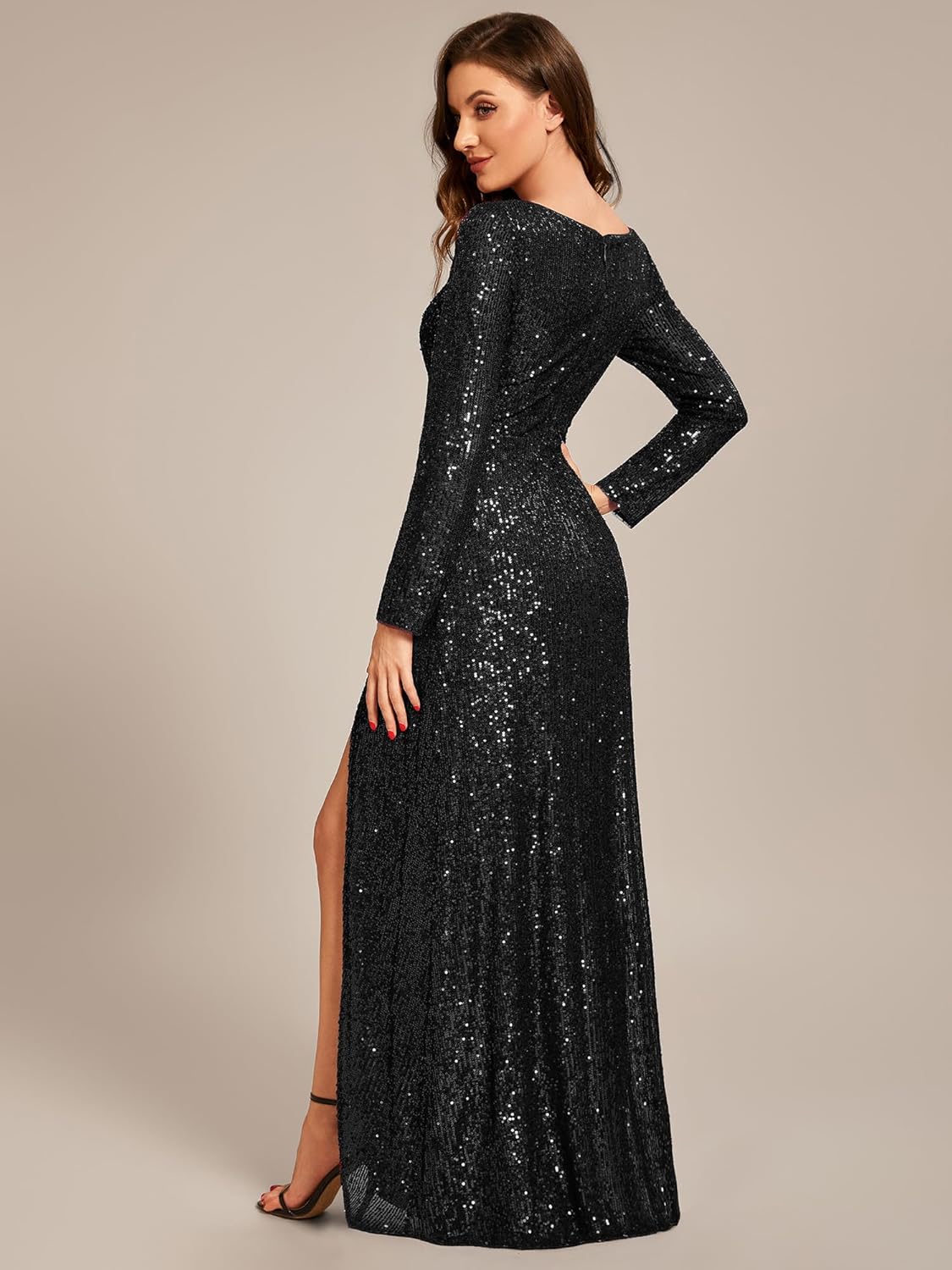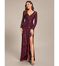 Features: Floor Length, long sleeve, low stretch,concealed zipper up the back, glamorous formal dress, semi formal dress, evening dress, prom dresses, wedding guest dress.