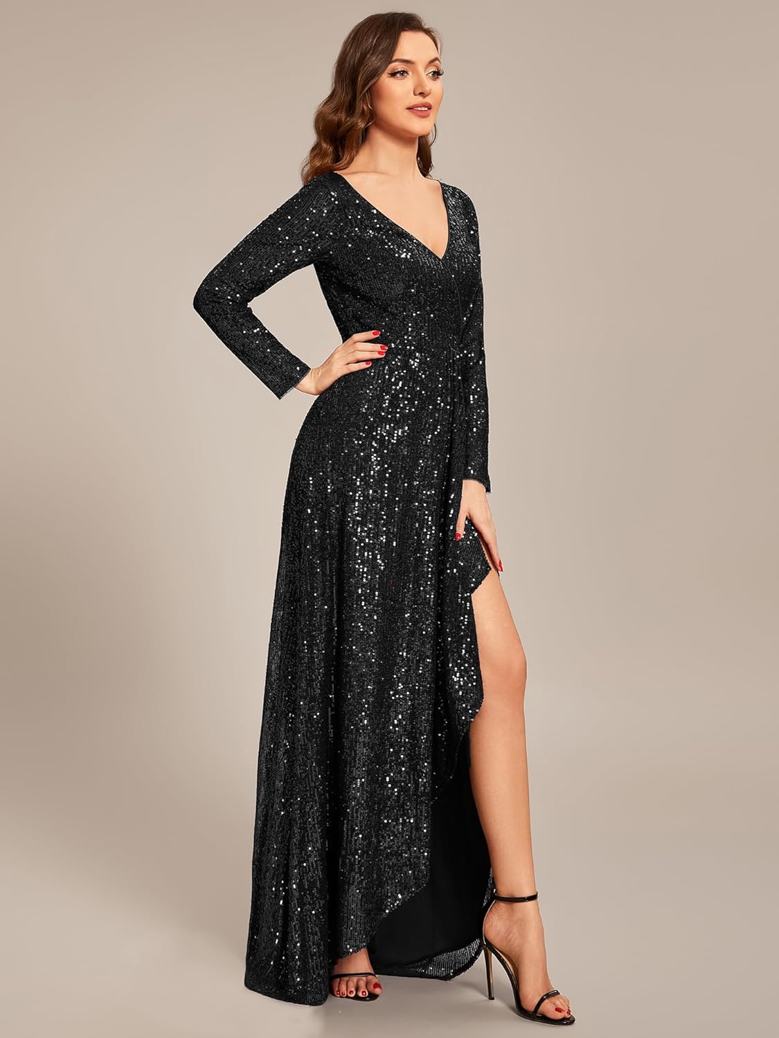 Winter Sequin Dress Long Sleeves A-Line High Low Maxi Evening Dresses 50146 - 8 / Black is backordered. It will be shipped when back in stock.